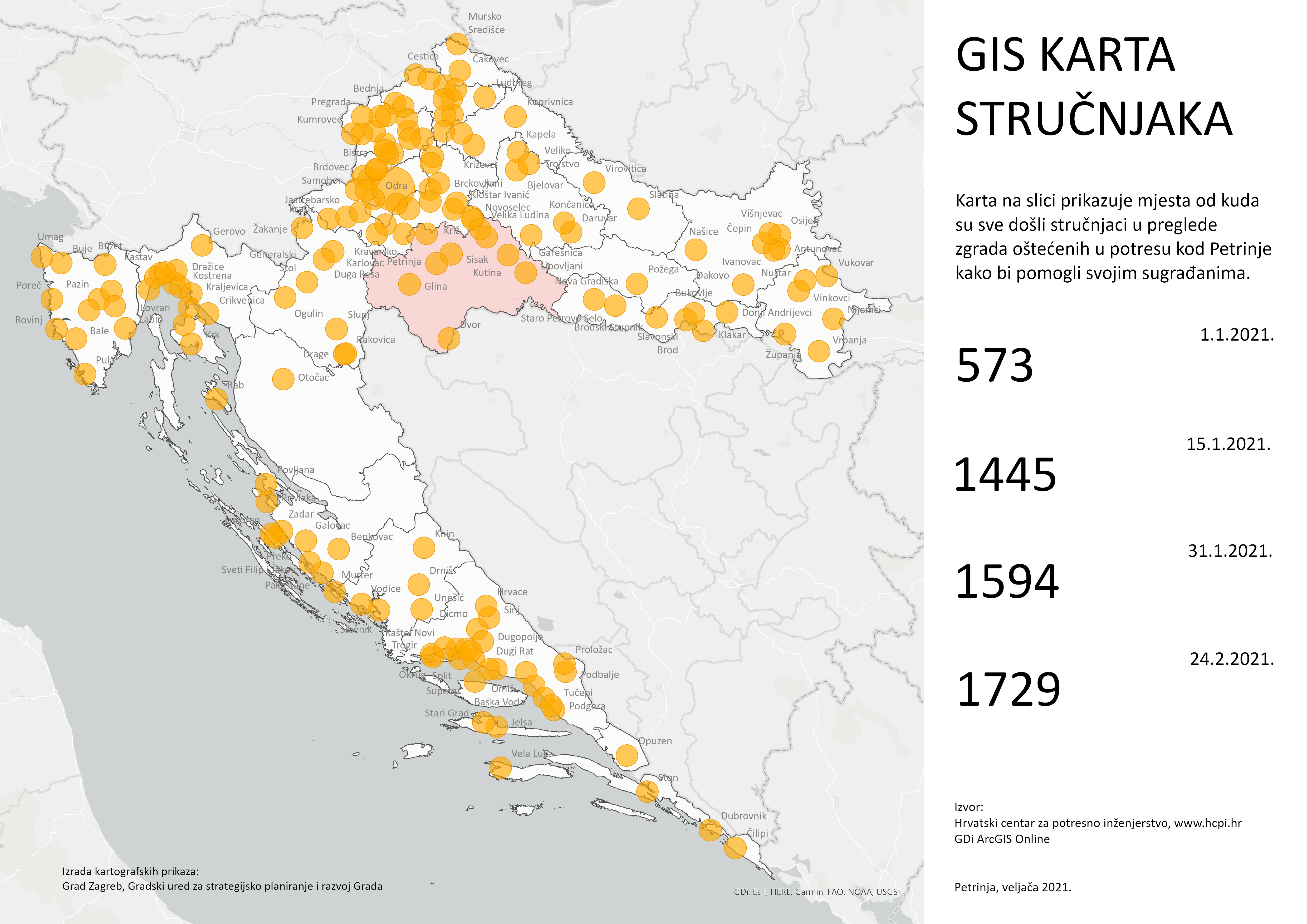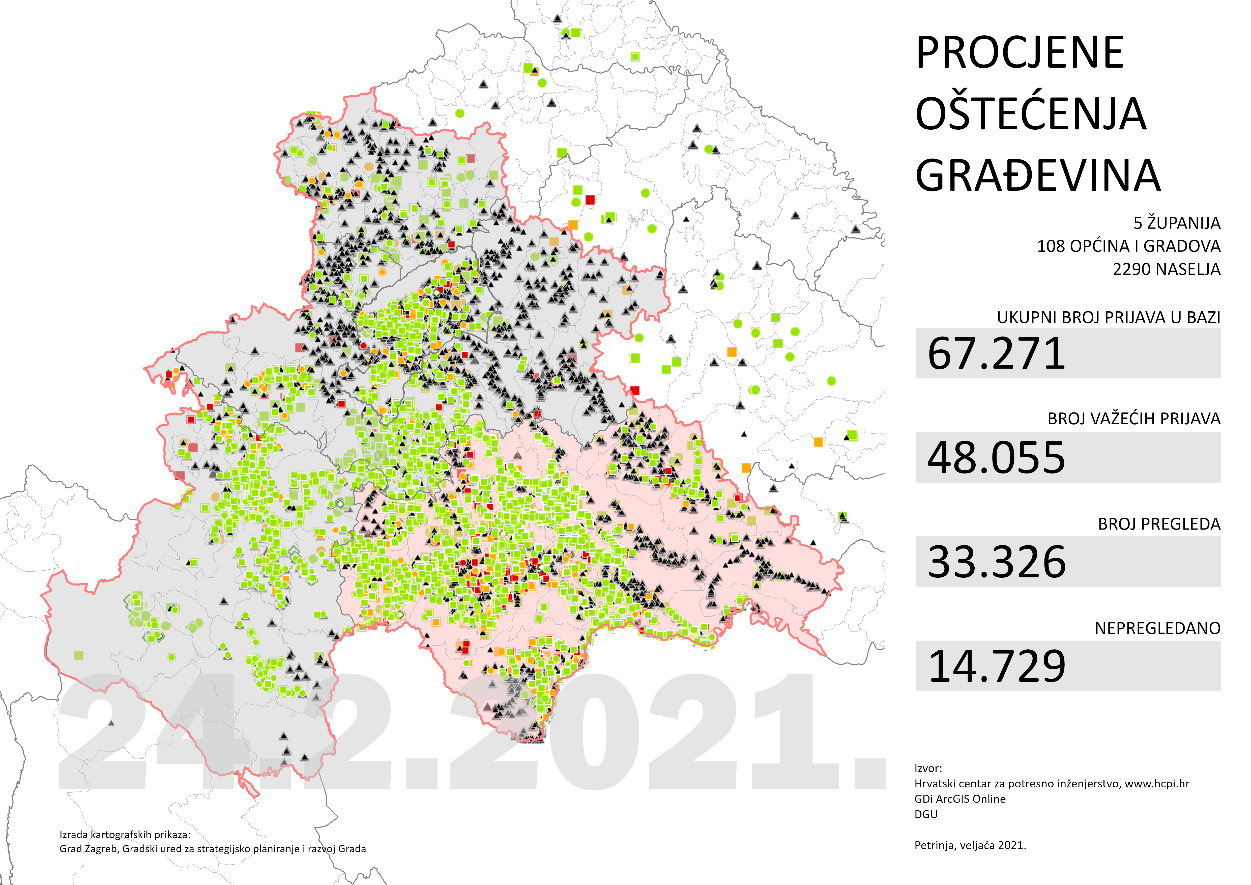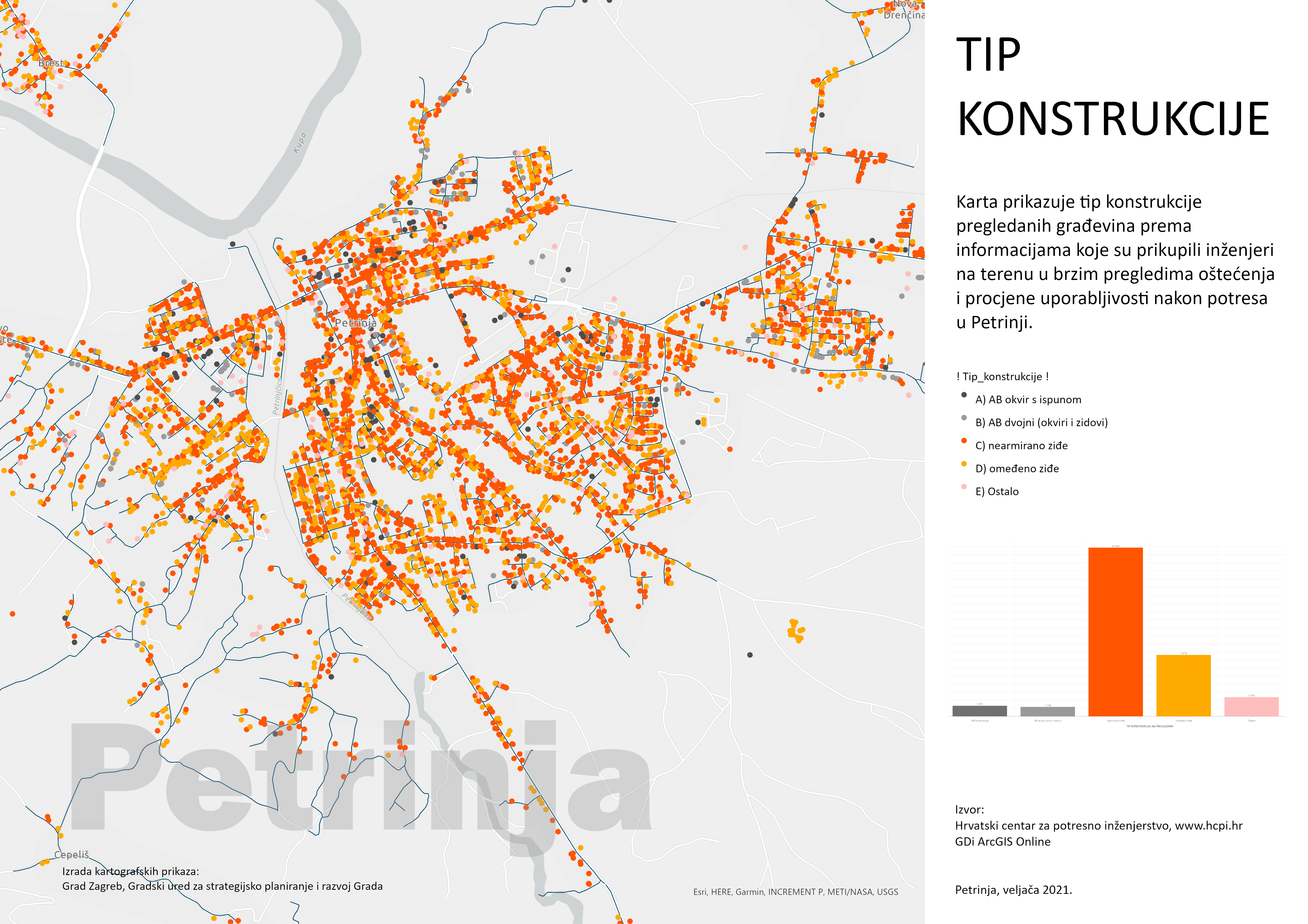 Predstavljen je rad službenika našeg Ureda na uređivanju GIS baze “Potres Zagreb 2020” i GIS baze “Potres Petrinja” koje su nastale u koordinaciji Hrvatskog centra za potresno inženjerstvo, na platformi tvrtke GDi I u suradnji s velikim brojem stručnjaka na terenu. Osim kontrole kvalitete ulaznih podataka pružalo se, a i dalje se pruža podrška u izradi prostornih analiza za potrebe donošenja novih tehničkih propisa i ukupnih procjena štete za potrebe obnove kako Grada Zagreba tako i područja pet županija pogođenih potresom u Petrinji. 1CroCEE Baza potres