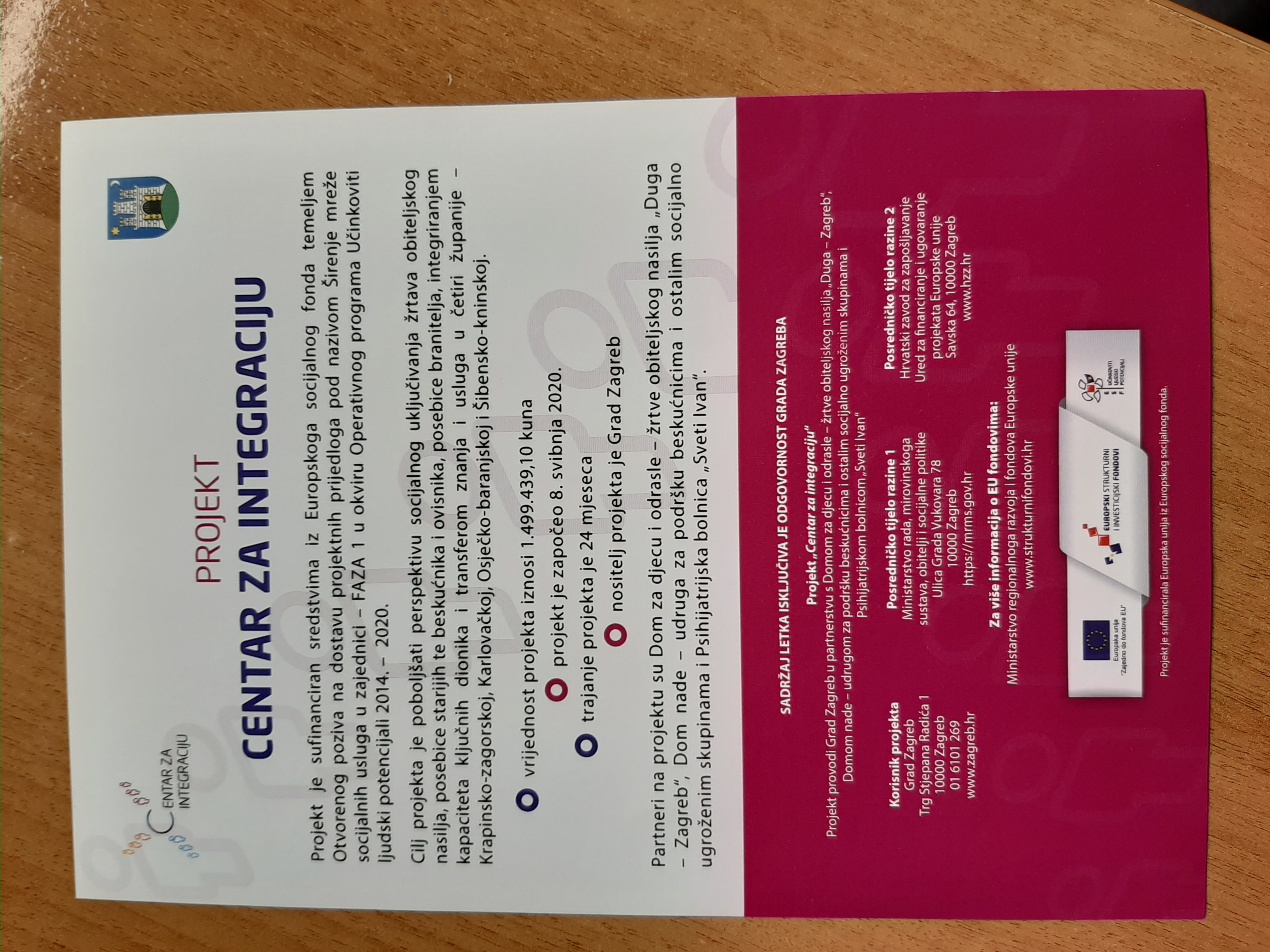 Partner/i: Dom za djecu i odrasle žrtve nasilja u obitelji „Duga – Zagreb“; Dom nade – udruga za podršku beskućnicima i ostalim socijalno ugroženim skupinama i Klinika za psihijatriju ”Sveti Ivan”