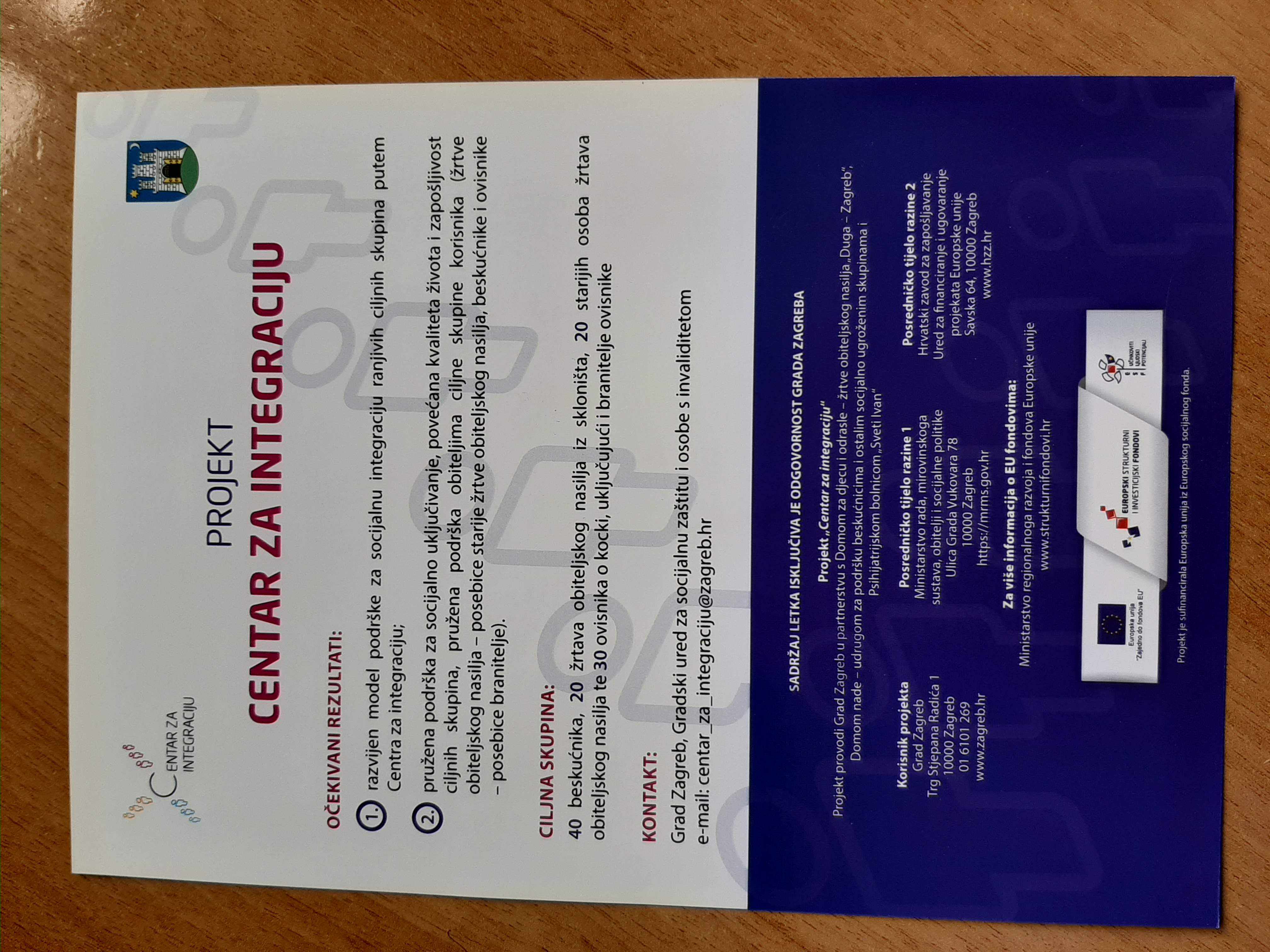 Ciljna skupina: 40 beskućnika, 20 žrtava obiteljskog nasilja iz skloništa, 20 starijih osoba žrtava obiteljskog nasilja te 30 ovisnika o kocki, uključujući i branitelje ovisnike.