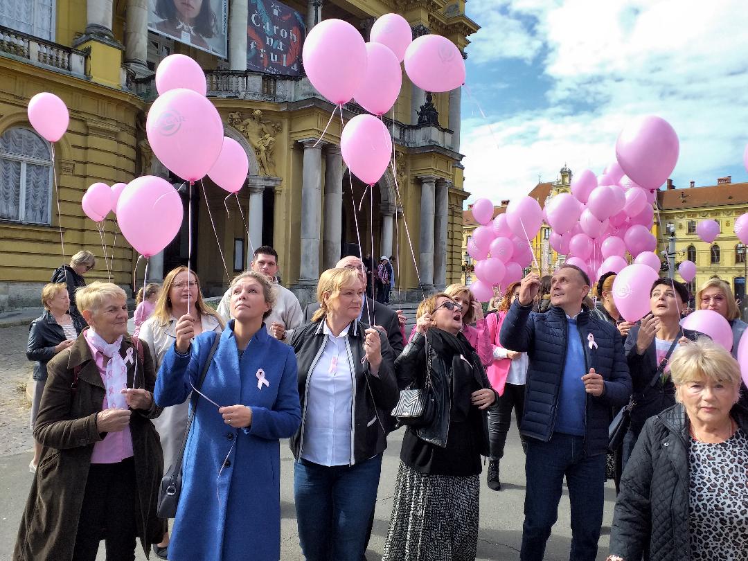 Javnozdravstvena manifestacija Dan ružičaste vrpce, koja se obilježava 20. godinu za redom, započela je danas ispred zgrade Hrvatskog narodnog kazališta odakle je povorka sjećanja na sve preminule od raka dojke i one koji se bore s tom zloćudnom bolesti krenula Masarykovom ulicom do Trga Petra Preradovića.