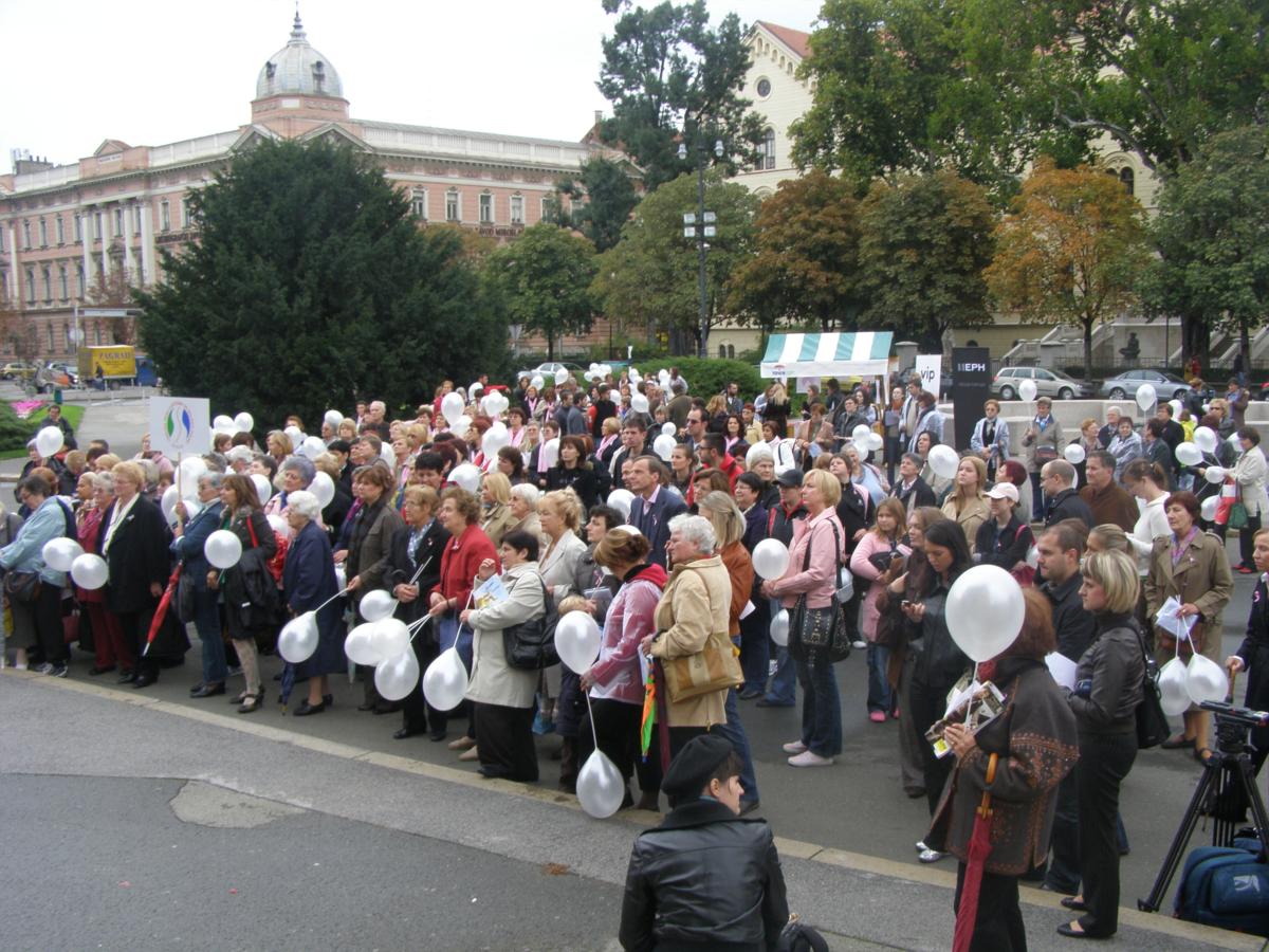 Akcija se istodobno održava u 32 hrvatska grada u organizaciji udruge Europa donna Hrvatska, koja je šetnjom od HNK do Cvjetnog trga željela skrenuti pozornost žena na ovu opasnu bolest i veliki značaj prevencije ranim otkrivanjem raka dojke.