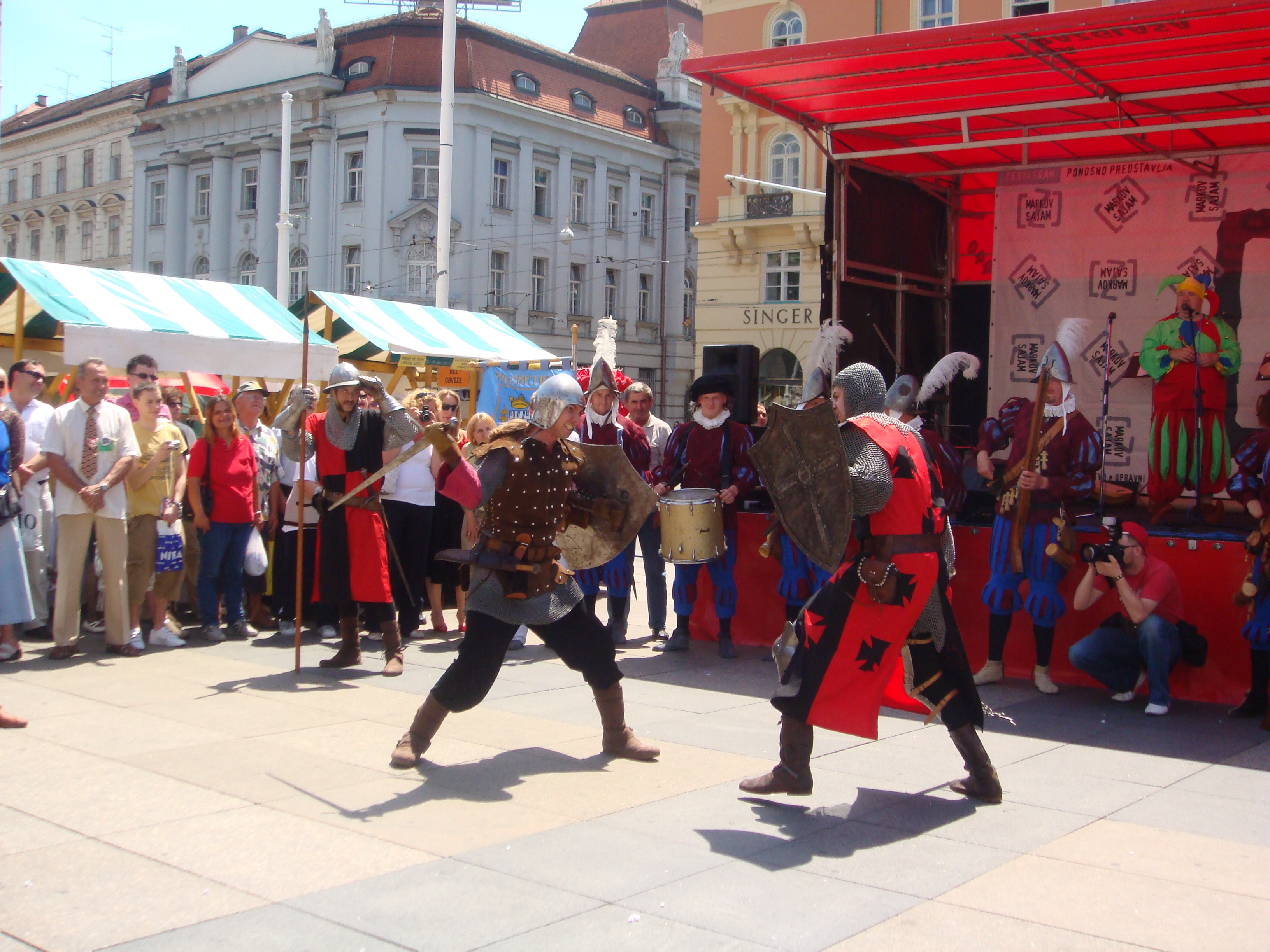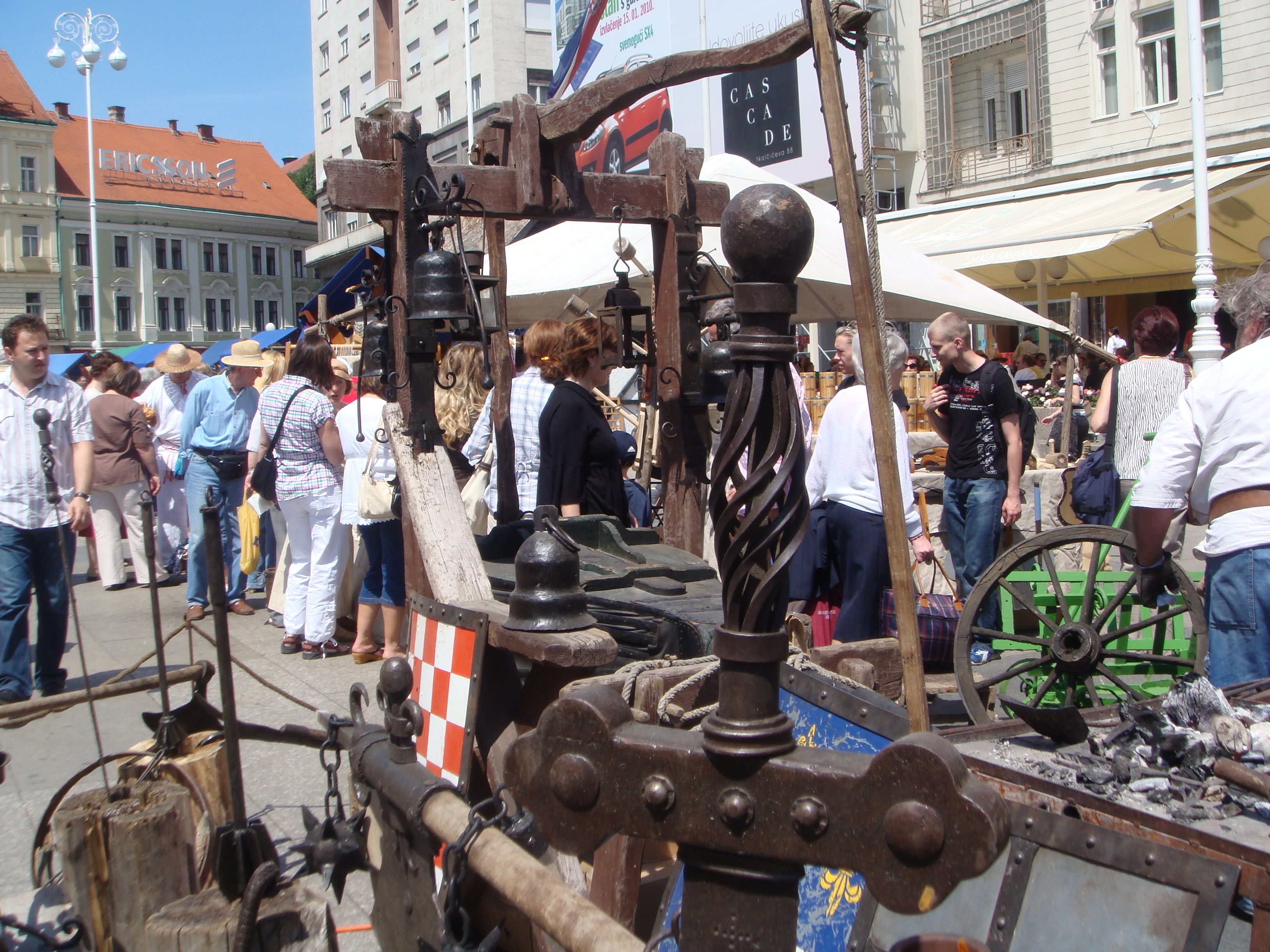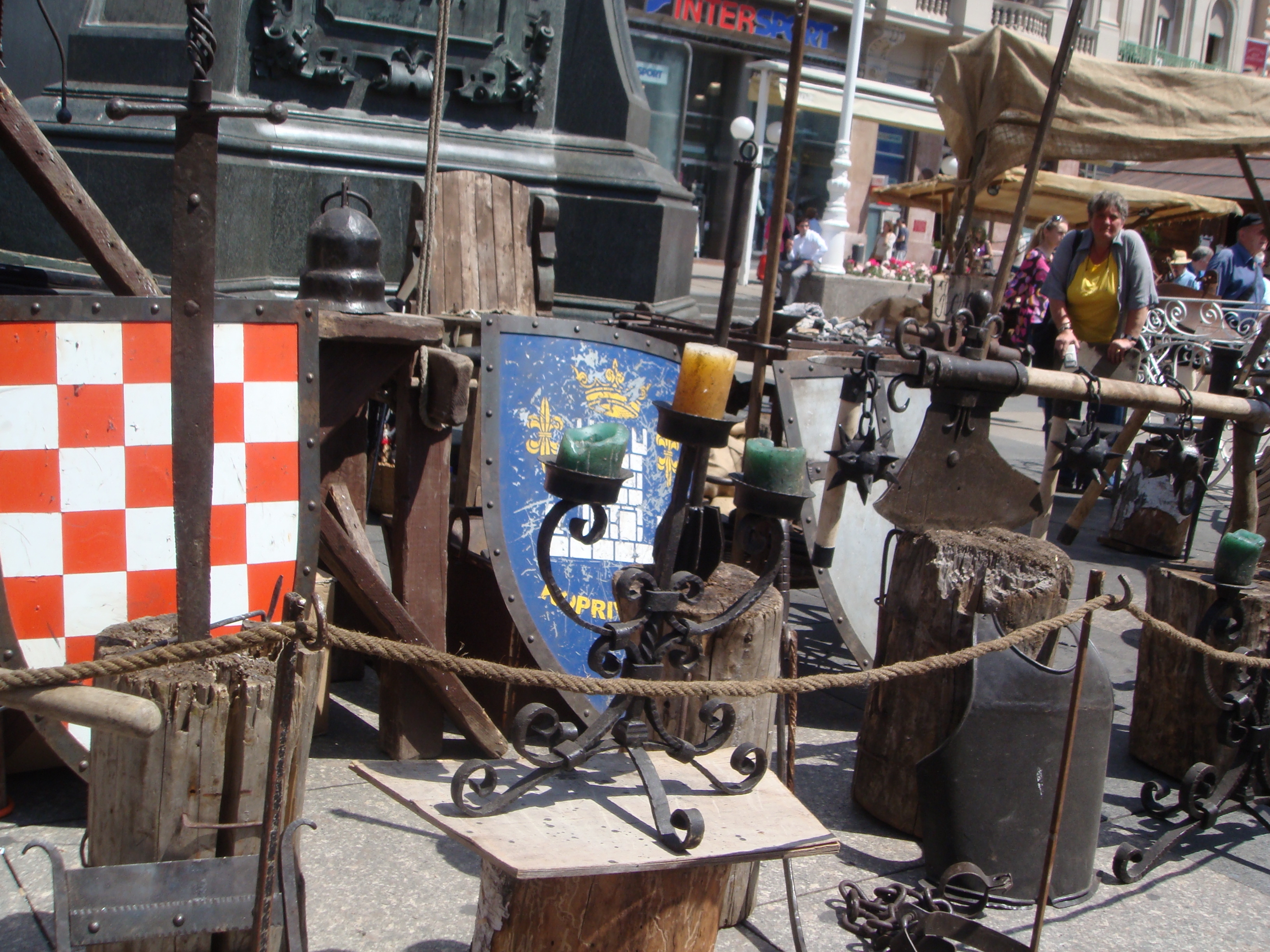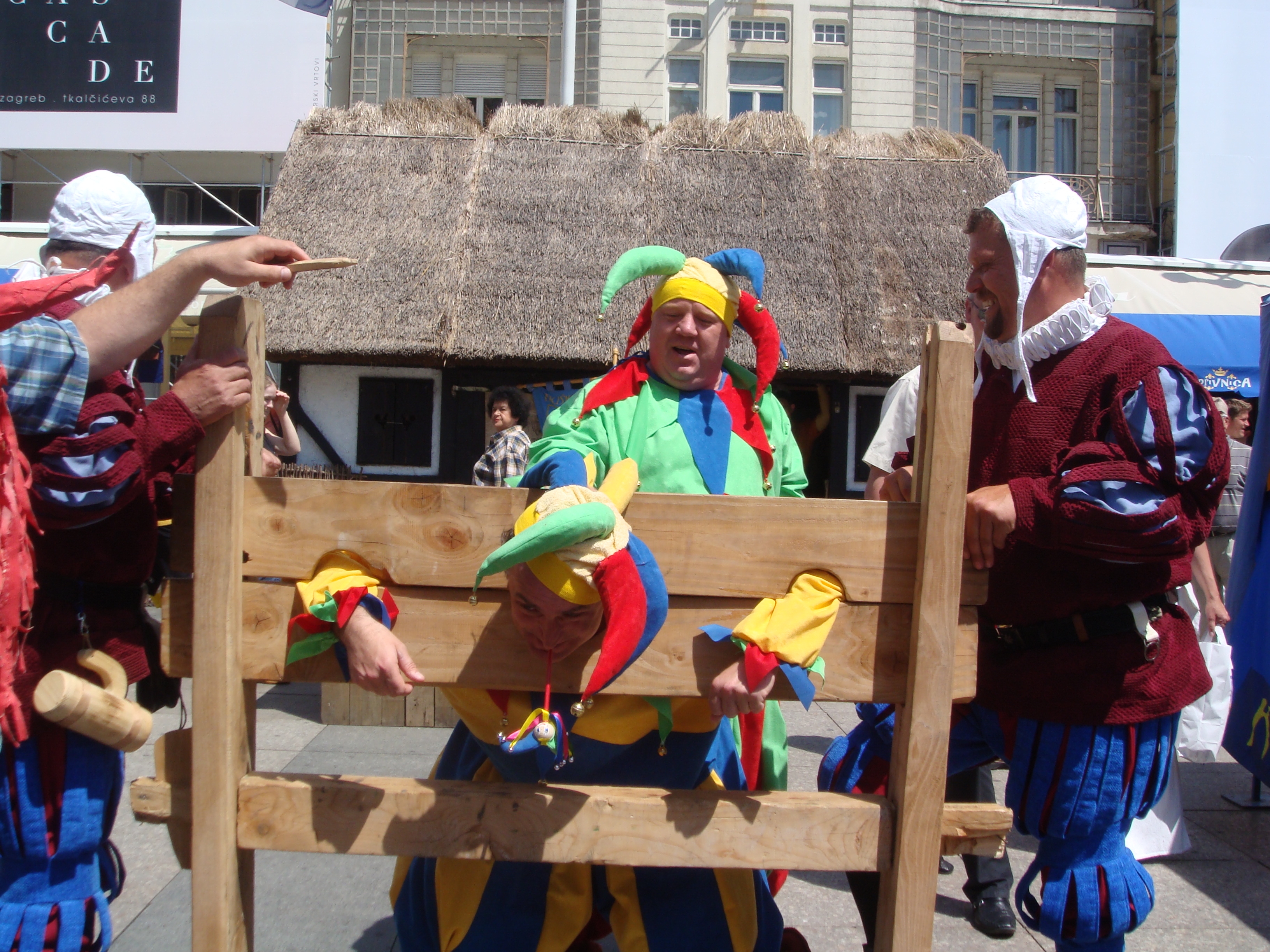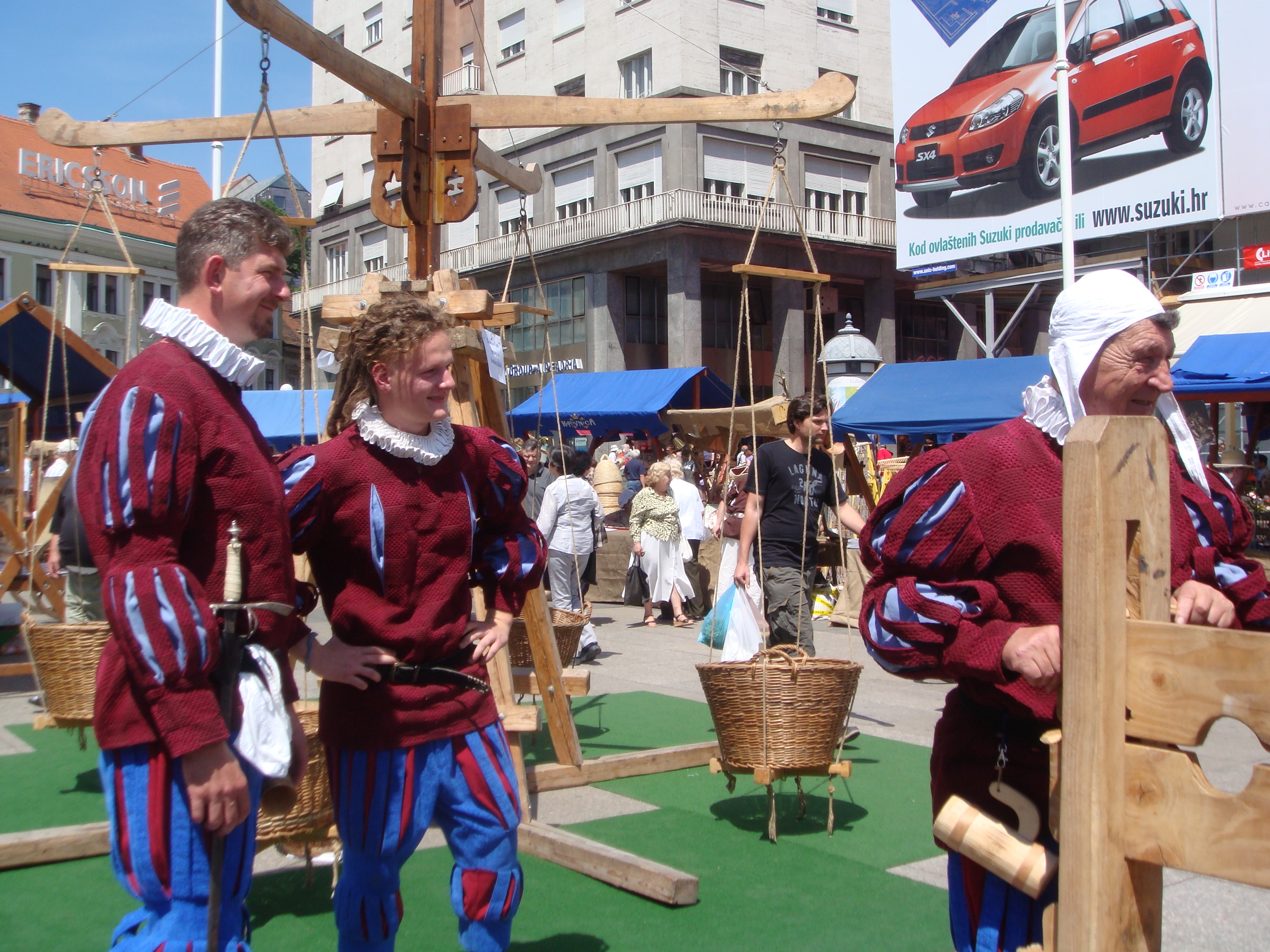 Do nedjelje, središnji će gradski trg biti srednjovjekovno sajmište na kojemu će autohtone proizvode nuditi obrtnici iz Zagreba, Zagrebačke županije i iz Koprivnice. Neće biti nimalo čudan susret s kostimiranim vitezovima, alkemičarima i renesansnim glazbenicima, a među ostalim, kao što pokazuju naše fotografije, zločesti dečki poput voditelja Dreleta i Darka ili možda nekog od Kraljeva ulice, mogu završiti i na stupu srama.