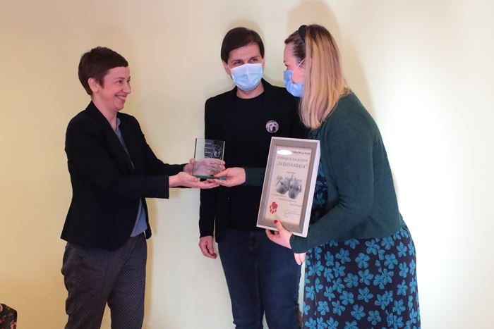 Godišnju nagradu „Tatjana Krajač“ za osobit doprinos Programu socijalizacije budućih pasa pomagača danas je u Centru za rehabilitaciju Silver volonterki Mirni Barač uručila zamjenica gradonačelnika Danijela Dolenec.