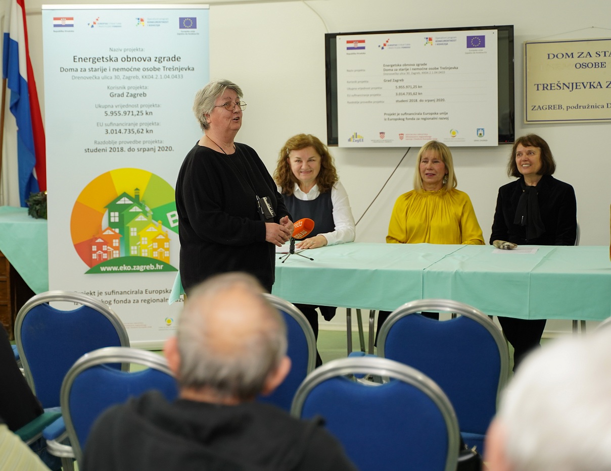 U utorak 17. prosinca održana je konferencija za medije povodom energetske obnove Doma za starije osobe Trešnjevka. Konferenciji su nazočili Ivančica Balenović, ravnateljica Doma Trešnjevka te iz Grada Zagreba, Gradskog ureda za gospodarstvo, energetiku i zaštitu okoliša pomoćnica pročelnice Melita Borić i voditeljica projekta Đurđica Veselin.
