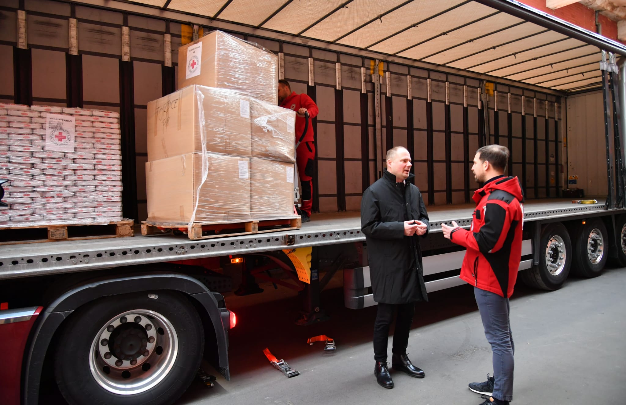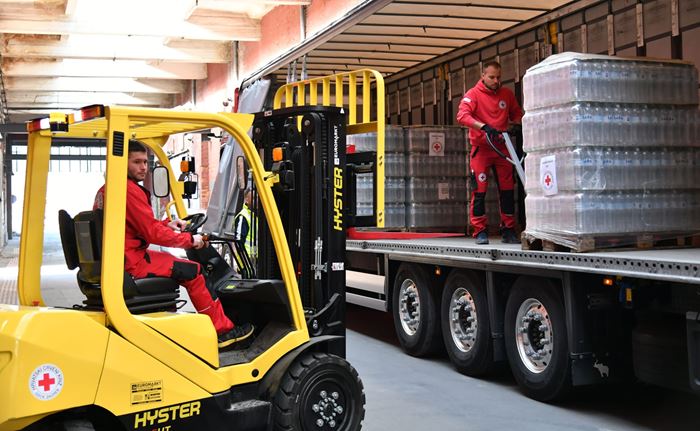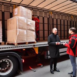 Kamion humanitarne pomoći šalje Grad Zagreb, koji je osigurao Gradsko društvo Crvenog križa Zagreb, krenuo je jutros prema Varšavi iz skladišta Crvenog križa u Heinzelovoj ulici.