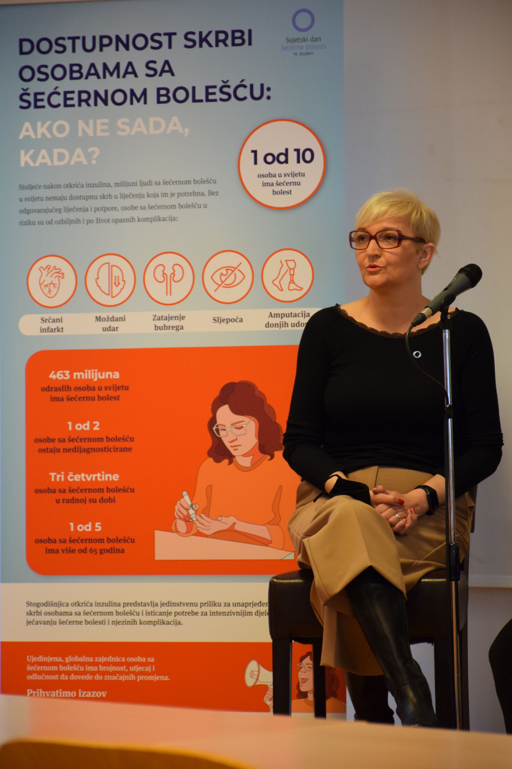 „Slika opće populacije nije dobra. Samo 20% ljudi se kreće, imamo najdeblje muškarce u Europi, trećina djece do 8 godina imaju prekomjernu tjelesnu težinu ili su pretila. Onda nije ni čudo da je kod osoba sa šećernom bolešću slika još gora. 80% osoba sa šećernom bolesti imaju prekomjernu tjelesnu težinu i pretili su. Potrebna nam je pravilna prehrana i redovito kretanje. Treba se pokrenuti!“- izjavila je Zrinka Mach, mag. soc. geront., predsjednica Hrvatskog saveza dijabetičkih udruga.