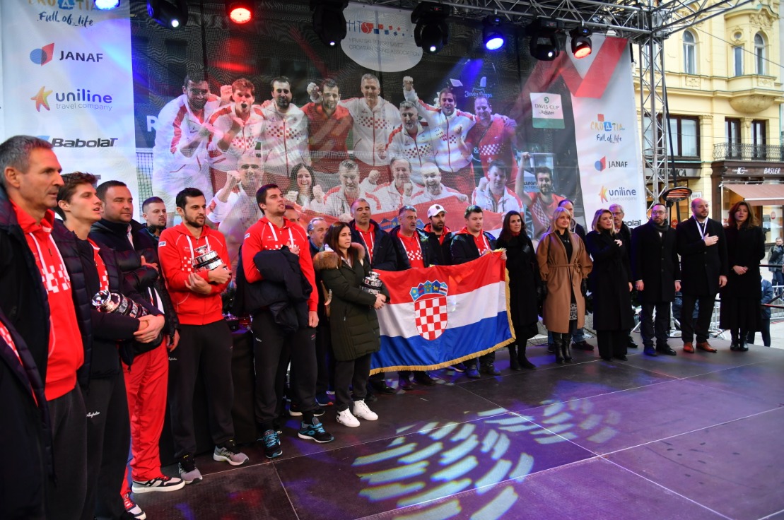 Nakon velikog uspjeha hrvatske reprezentacije u Davis Cup 2021., na Trgu bana Jelačića upriličen je doček dostojan nezaboravnih nastupa hrvatskih tenisača na ovom turniru.