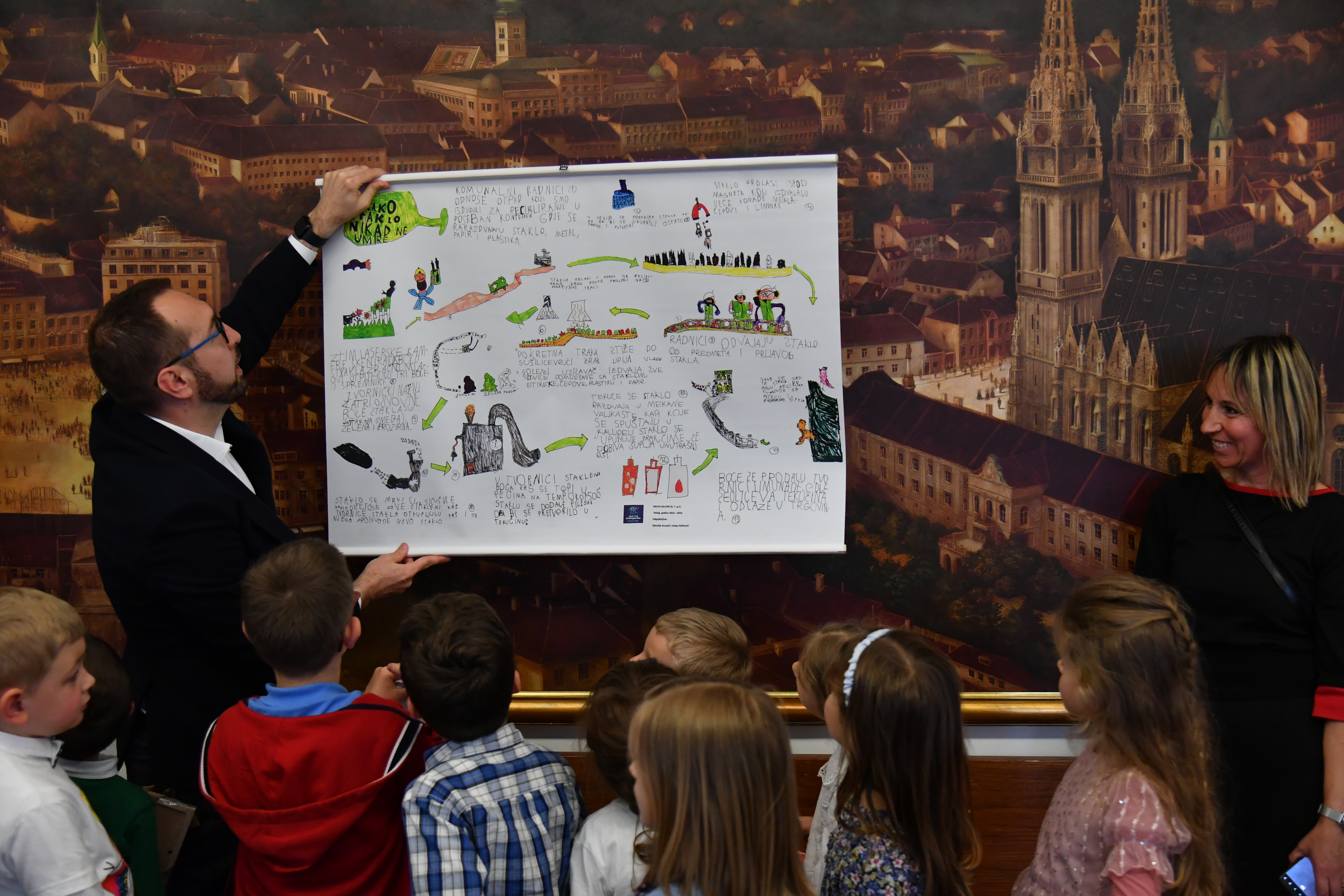 Na pitanje o tome može li biti više biciklističkih staza, gradonačelnik Tomašević je rekao kako se konstantno na tome radi, a pozvao ih je i da što češće na Sljeme idu žičarom koja je za djecu besplatna. Dodao je i kako Grad namjerava kupiti autobuse na vodik ili električnu energiju kako bi se zrak što manje zagađivao. Poručio im je i da slušaju tete, jedu što više voća i povrća, bave se sportom te da u školi marljivo uče i postanu dobri i vrijedni ljudi koji će svojim radom doprinijeti našem gradu. Gradonačelnik je za kraj zaigrao s njima nogomet te se našalio da mu mališani postavljaju teže pitanja od novinara na redovnim konferencijama za medije koje održava.