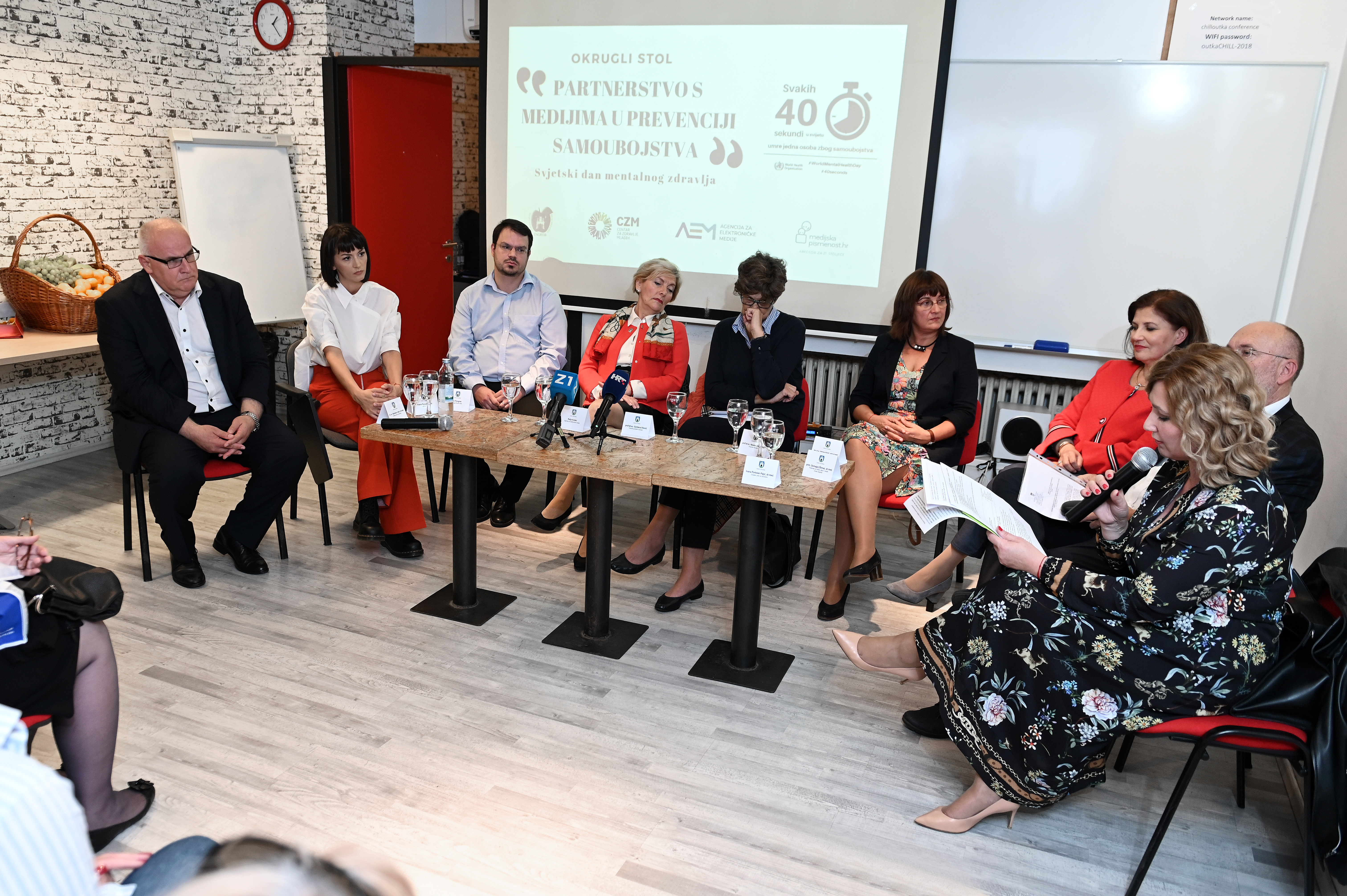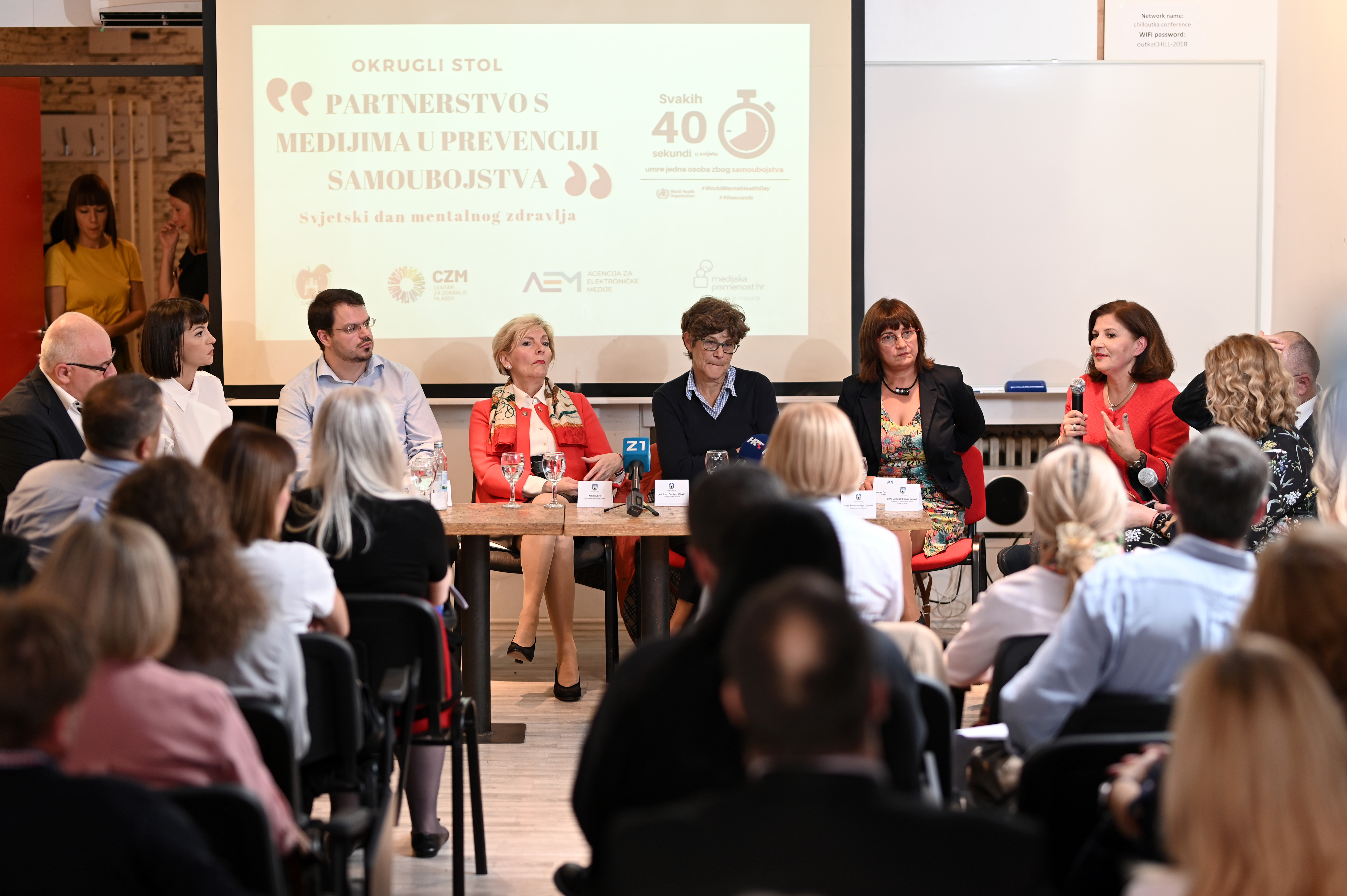 Na okruglom stolu sudjelovali su: dr.sc. Vjekoslav Jeleč, dr.med., pročelnik Gradskog ureda za zdravstvo Grada Zagreba, prof.dr.sc. Gordana Vilović s Fakulteta političkih znanosti u Zagrebu, prof.dr.sc. Nataša Jokić Begić s Odsjeka za psihologiju Filozofskog fakulteta u Zagrebu, prim. Domagoj Štimac, dr.med., zamjenik ravnateljice Poliklinike za zaštitu djece i mladih Grada Zagreba, doc.dr.sc. Petrana Brečić, prim.dr.med., ravnateljica Klinike za psihijatriju Vrapče, Katija Kušec iz Agencija za elektroničke medije, Ivana Paradžiković, urednica na Novoj TV te Tin Pongrac, predsjednik udruge Životna linija. Okrugli stol je moderirala Ivana Portolan Pajić, dr. med., zamjenica pročelnika Gradskog ureda za zdravstvo.