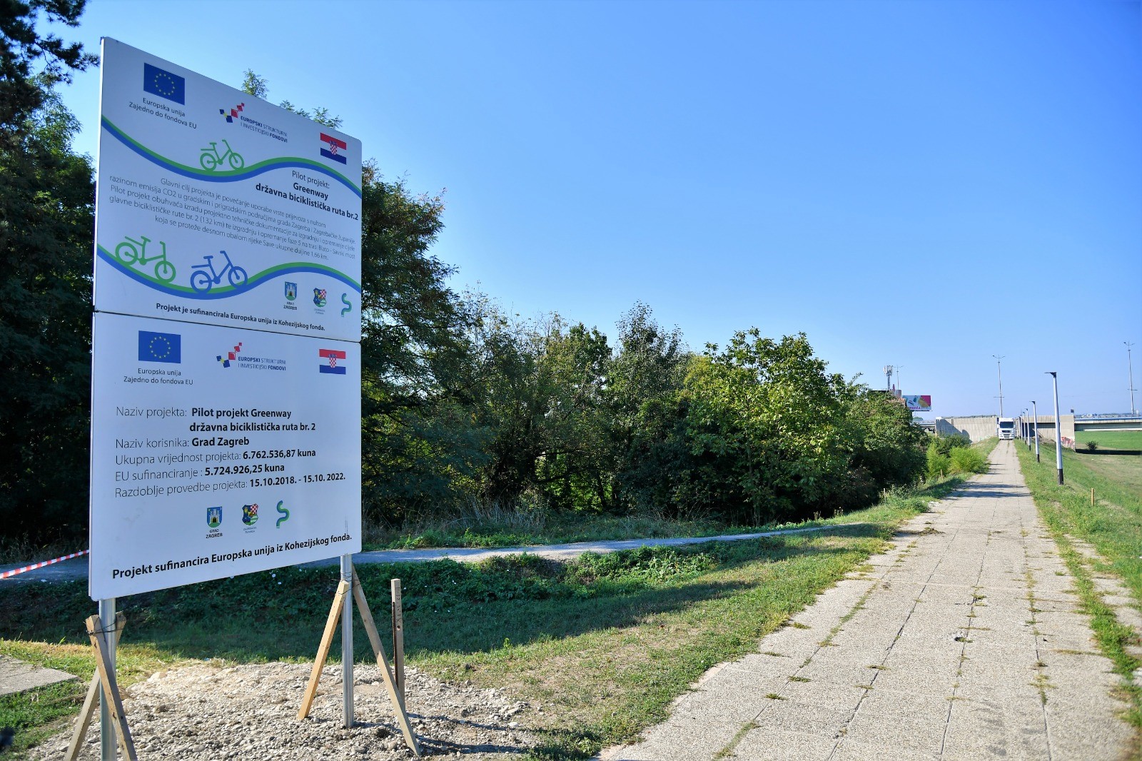 Projektom „GREENWAY“ - državna glavna biciklistička ruta br. 2 planira se izgraditi biciklistička prometnica koja prati tok rijeke Save od granice sa Slovenijom do Lijevog Dubrovčaka ukupne duljine 132 km. Projektiranje preostalih 130 km je u tijeku, a izgradnja Greenwaya uključuje i dodatnu opremu koja uključuje: rasvjetu, punjače za e-bicikle (pedelece), odmorišta, parkirališta, info oznake i brojače prometa. Planira se i uređenje prilaza mostovima kao i uređenje prilaza i spojeva na postojeću biciklističku i cestovnu infrastrukturu.