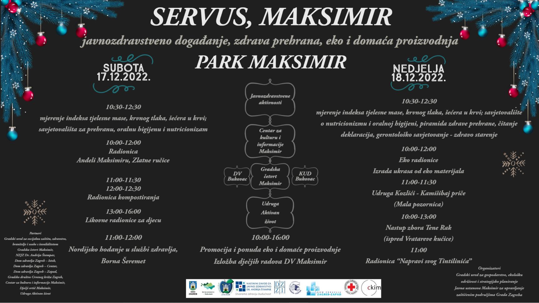Grad Zagreb, Gradski ured za gospodarstvo, ekološku održivost i strategijsko planiranje, Gradski ured za socijalnu zaštitu, zdravstvo, branitelje i osobe s invaliditetom i Javna ustanova Maksimir zajedno s partnerima organizira Božićnu (adventsku) manifestaciju „
