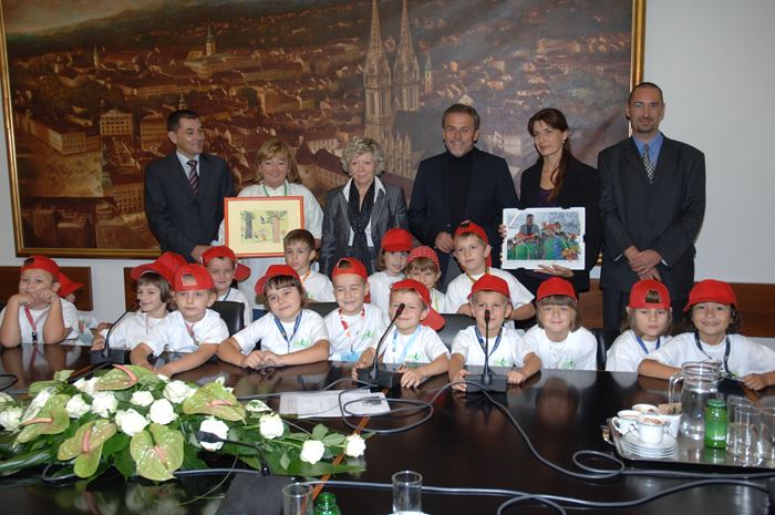 Uz smijeh i veselje, Slonići su gradonačelniku otpjevali dvije pjesmice o Zagrebu te su mu za uspomenu darovali zajedničku fotografiju, snimljenu ove godine na Bundeku.