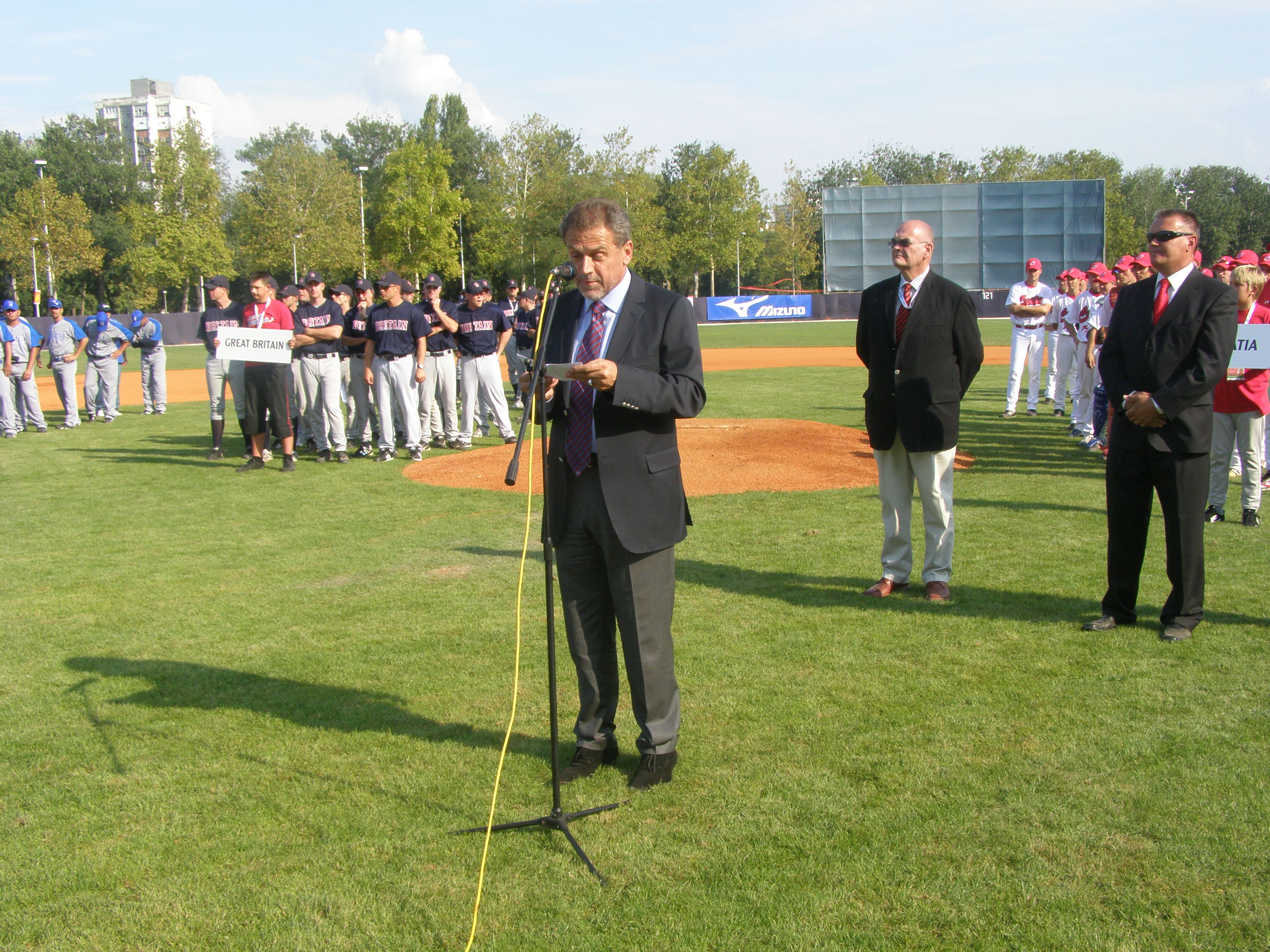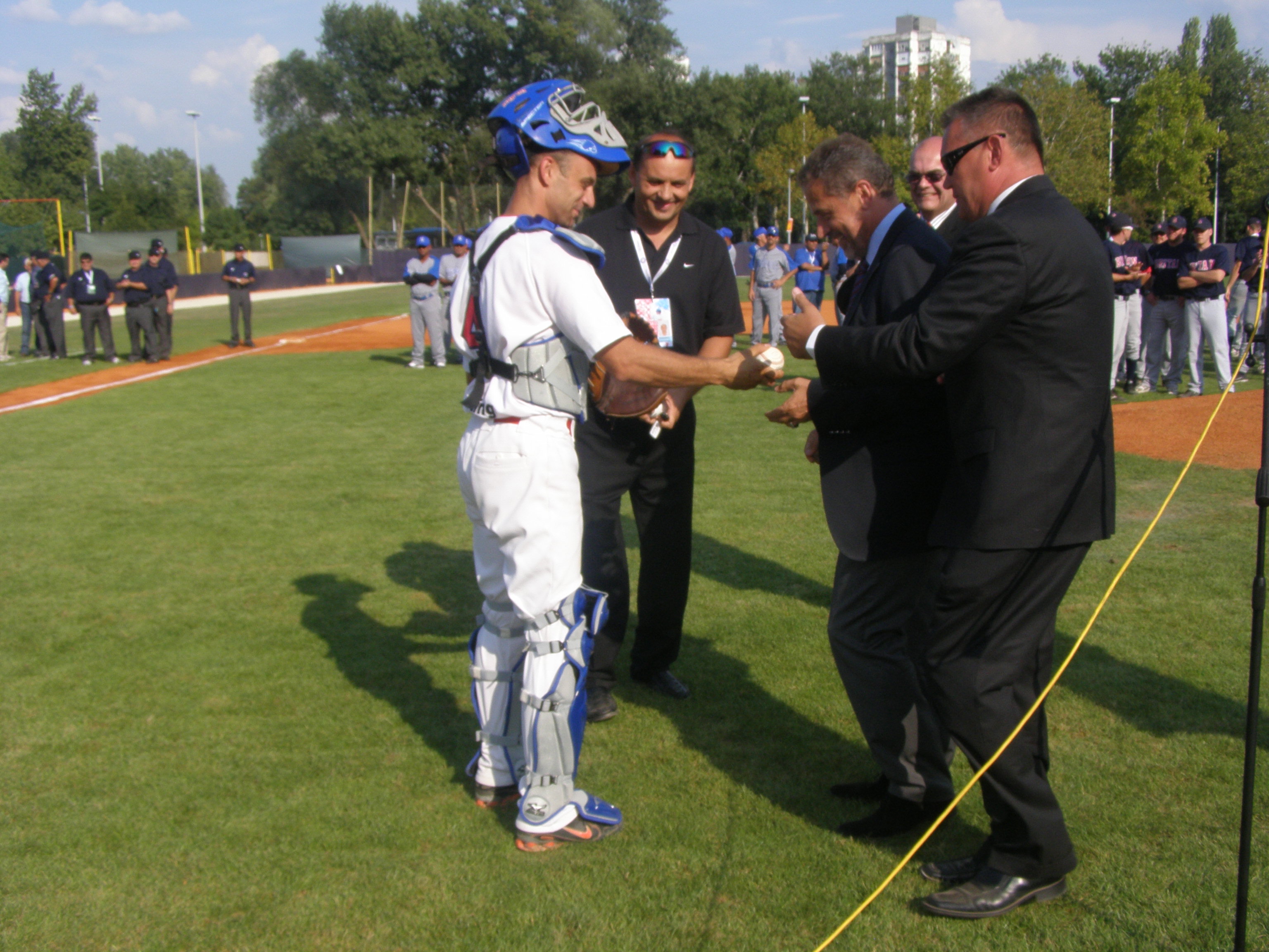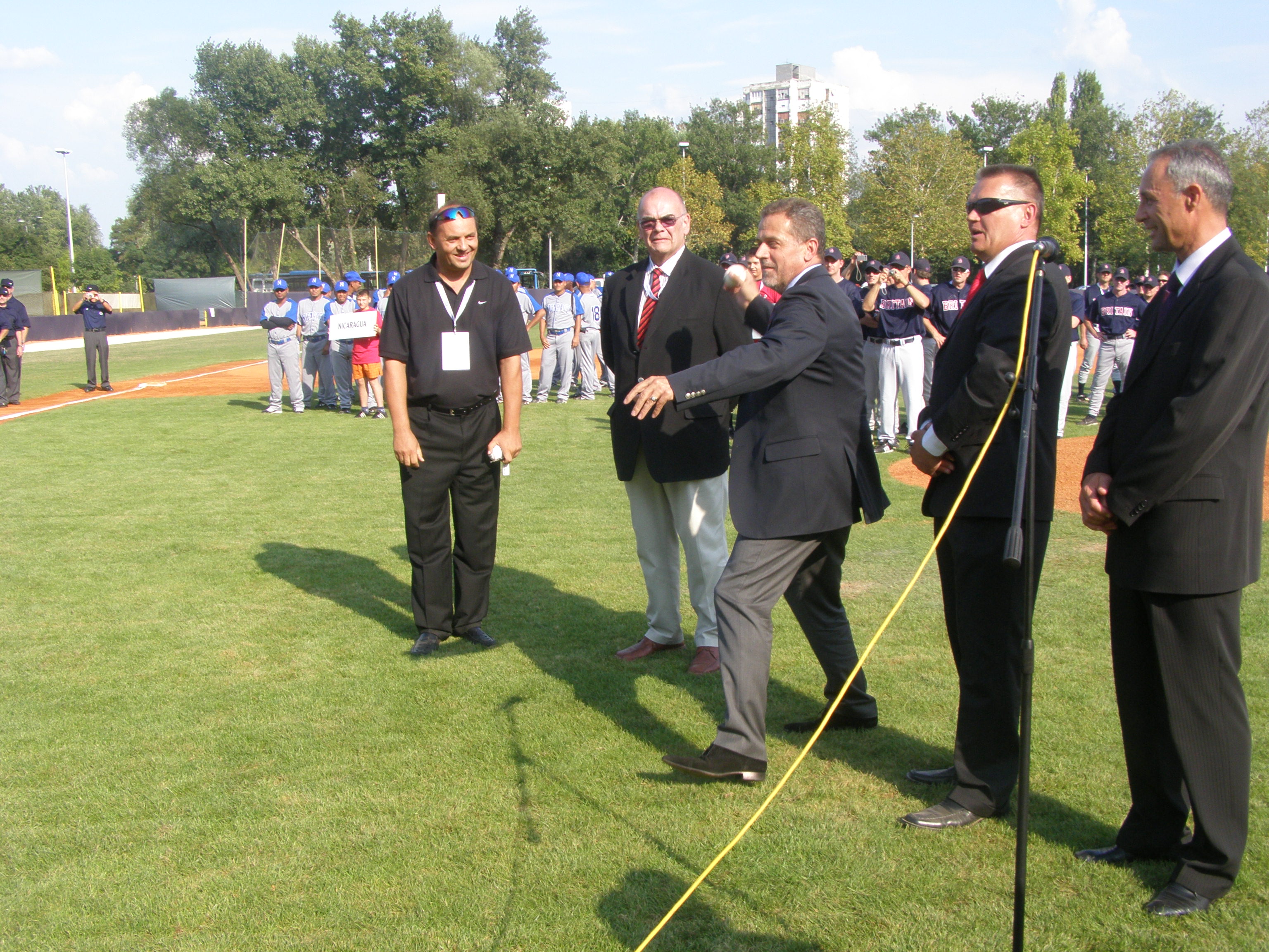 Uoči utakmice 1. kola između Hrvatske i Nikaragve na stadionu u Središću, simboličnim bacanjem prve loptice, gradonačelnik Milan Bandić otvorio je natjecanje u grupi D Svjetskog prvenstva u baseballu kojoj je domaćin Grad Zagreb. Osim Zagreba domaćini ostalih grupa Svjetskog prvenstva su Barcelona, Prag, Regensburg i Stockholm.