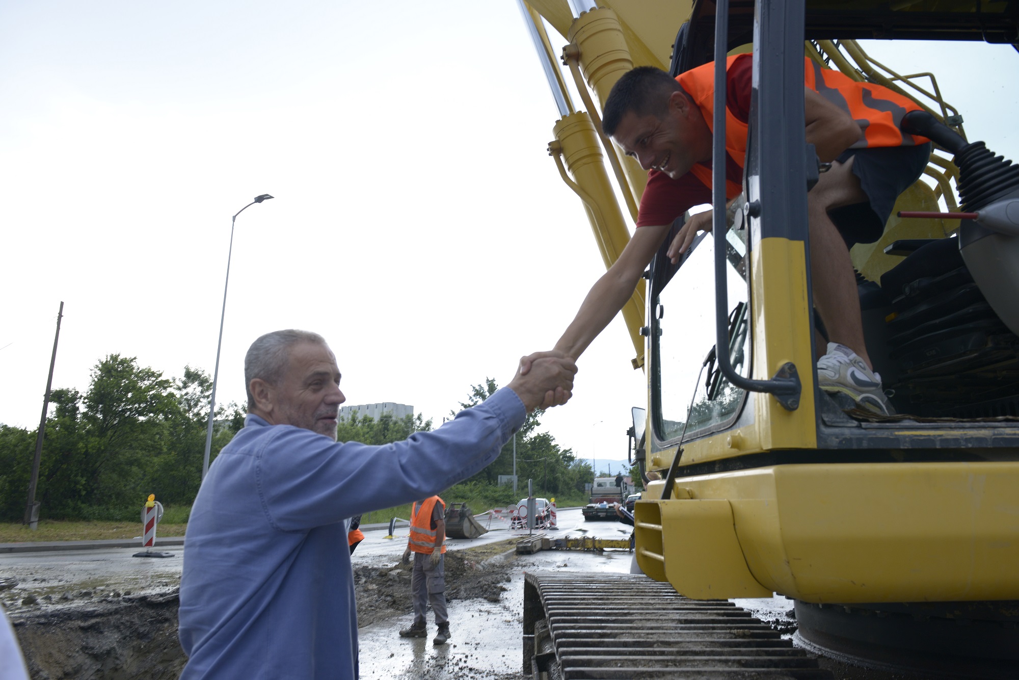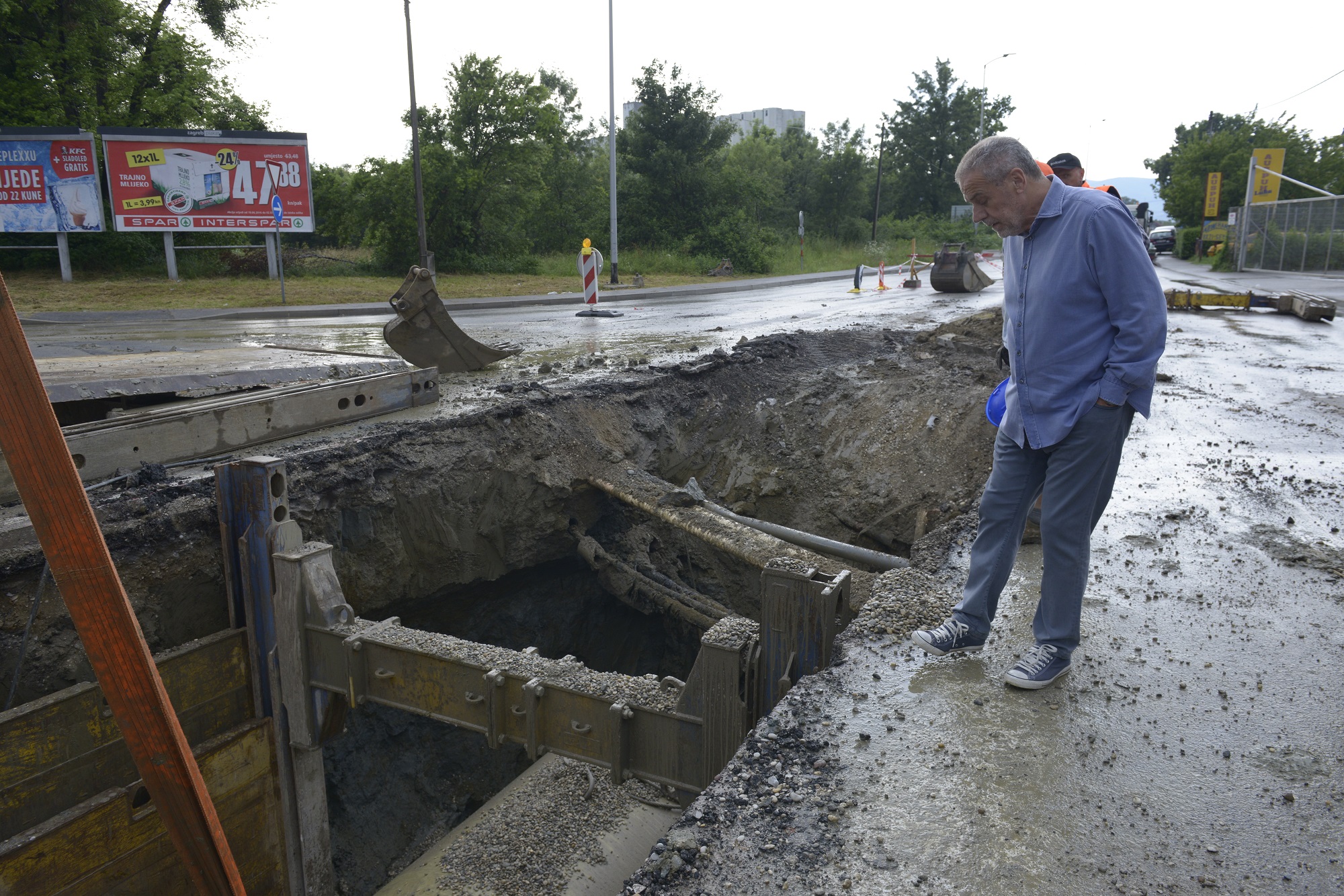 Nakon obilaska nadvožnjaka u Slavonskoj, gradonačelnik Milan Bandić danas je, sa suradnicima, obišao i radnike na križanju Čulinečke ceste i Slavonske avenije, gdje traje izgradnja kolektora odvodnje.