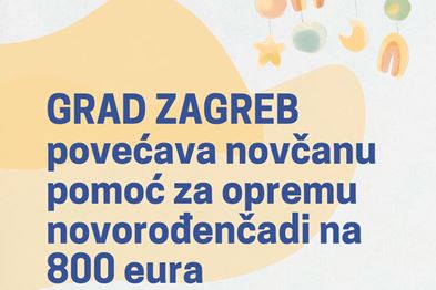 Grad Zagreb povećava novčanu pomoć za opremu novorođenčadi na 800 eura