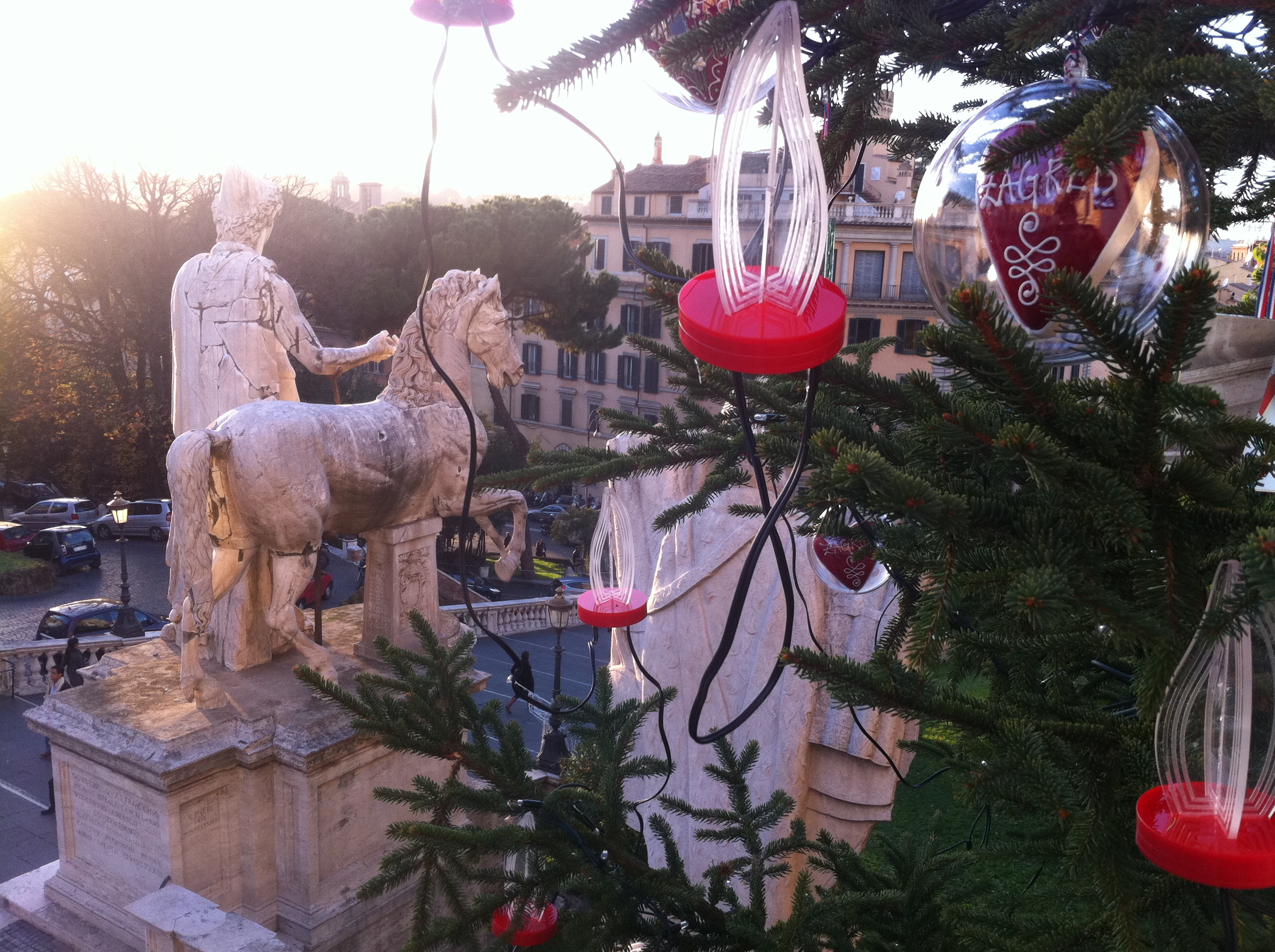 Kao izraz prijateljstva i dobre suradnje glavnih gradova Hrvatske i Italije, sinoć je, na rimskom trgu Campidoglio zasjalo božićno drvce okićeno kuglicama i licitarskim srcima prepoznatljivim zagrebačkim suvenirom i simobolom. Postavivši zadnju kuglicu i upalivši rasvjetu na jelki visokoj 12 metara, daru Grada Zagreba Gradu i građanima Rima, gradonačenici glavnih gradova Hrvatske i Italije Milan Bandić i Giovanni Alemanno potvrdili su interes i zajedničku želju za suradnjom koja će ubrzo okruniti potpisivanjem Protokola o prijateljstvu.