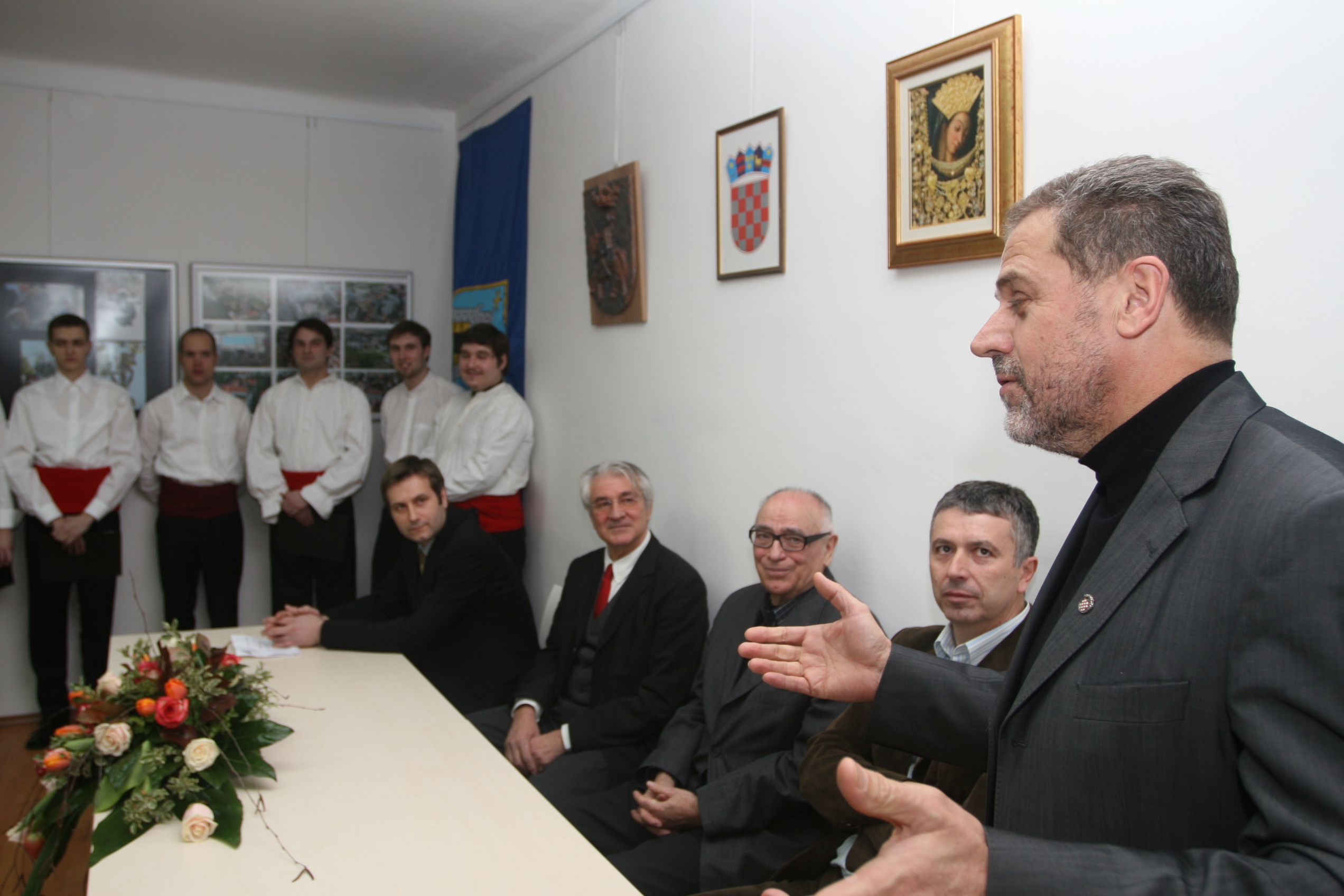* fotografija prva slijeva: gradonačelnik Sinja uručuje gradonačelniku Zagreba album sa slikama svojega grada.