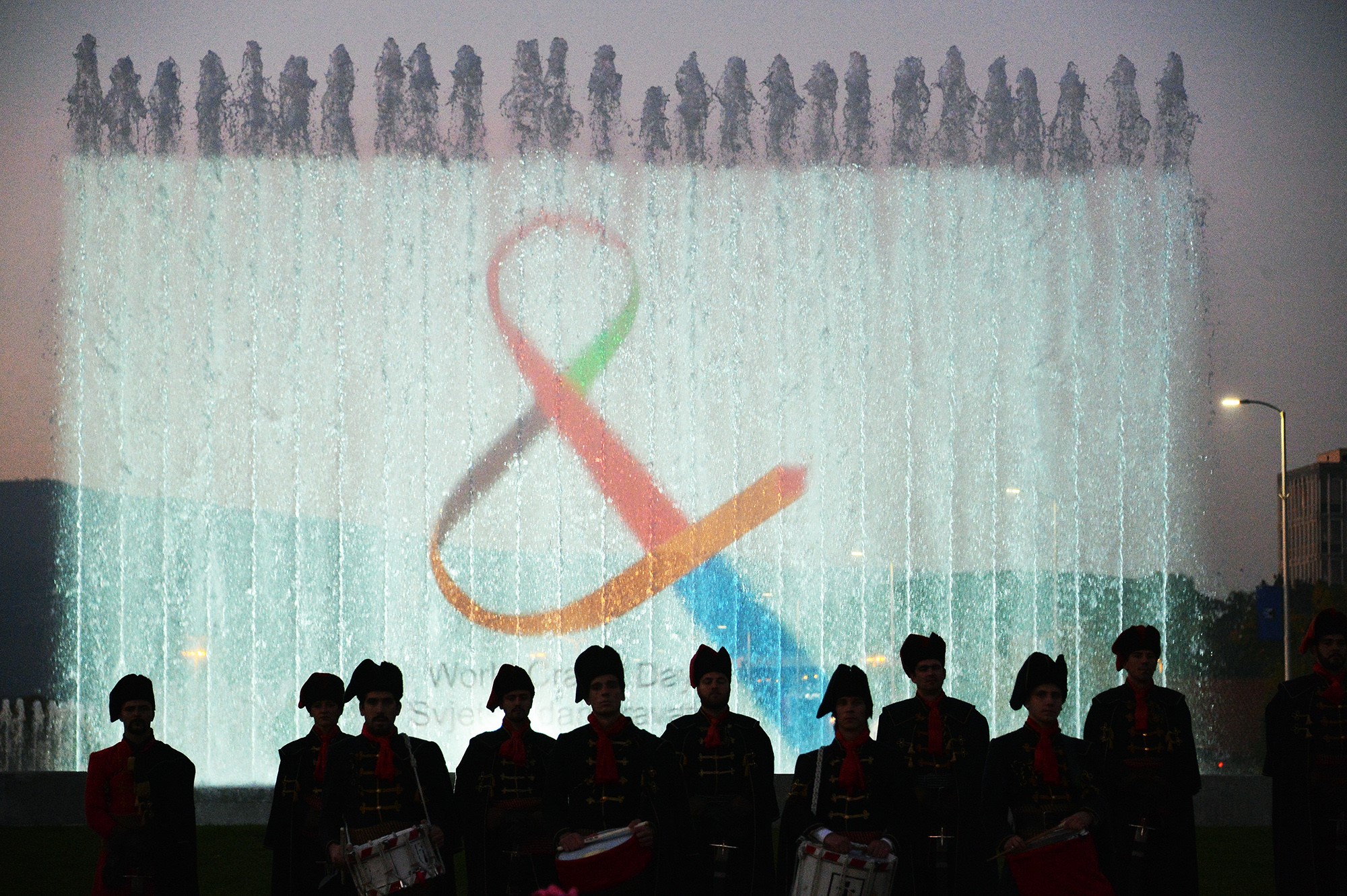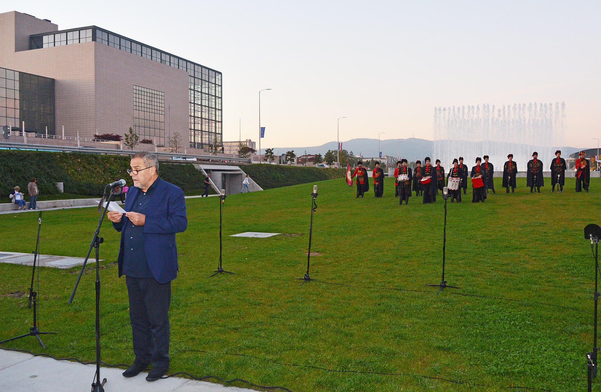 Na svečanosti otvaranja postrojavanje vojnika Kravat pukovnije pratio je njihov bubnjarski orkestar uz svjetlosne projekcije na temu Grad Zagreb – prijestolnica kravate koje će obasjavati fontanu sve do završetka Festival, 18.listopada.