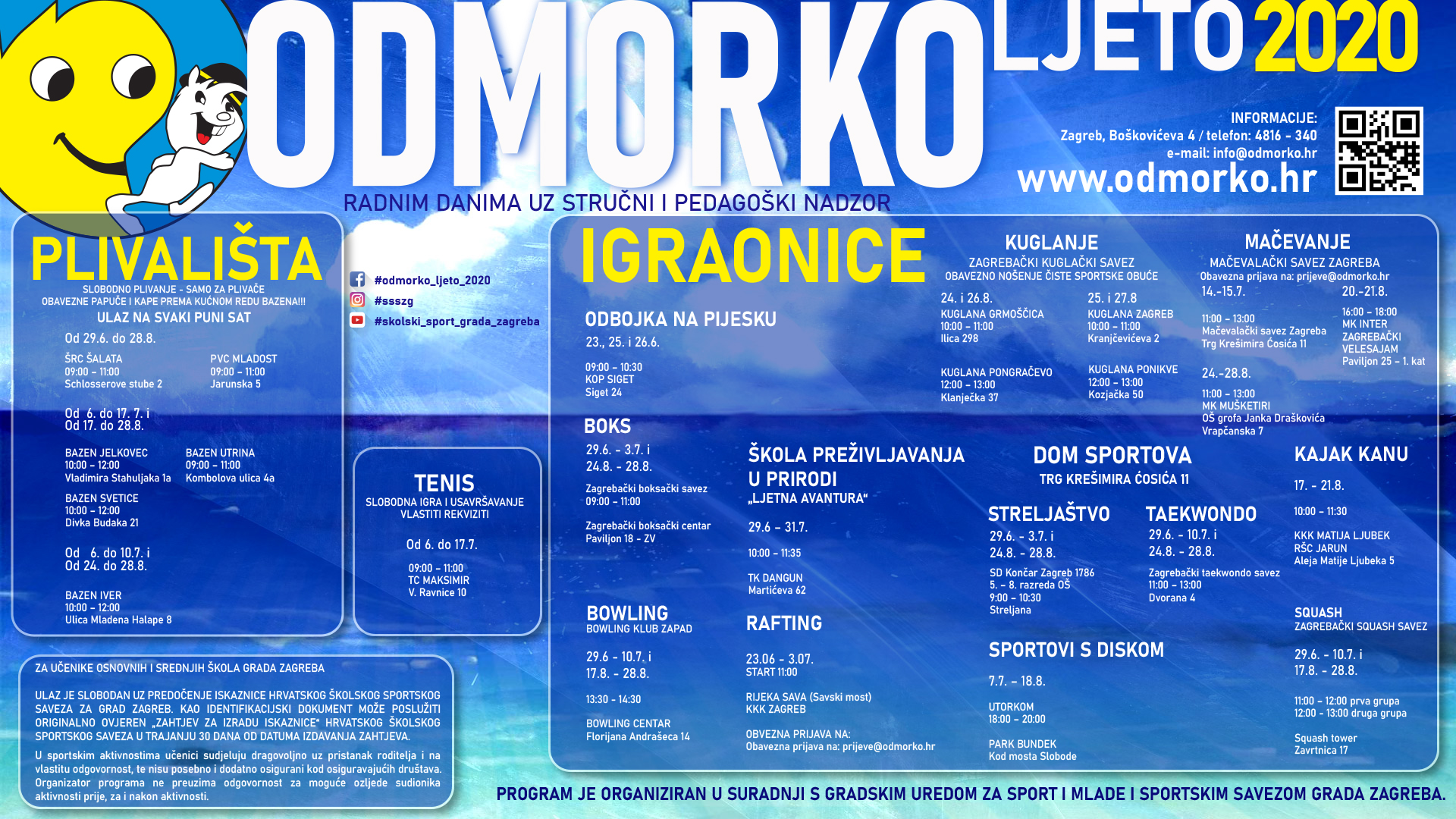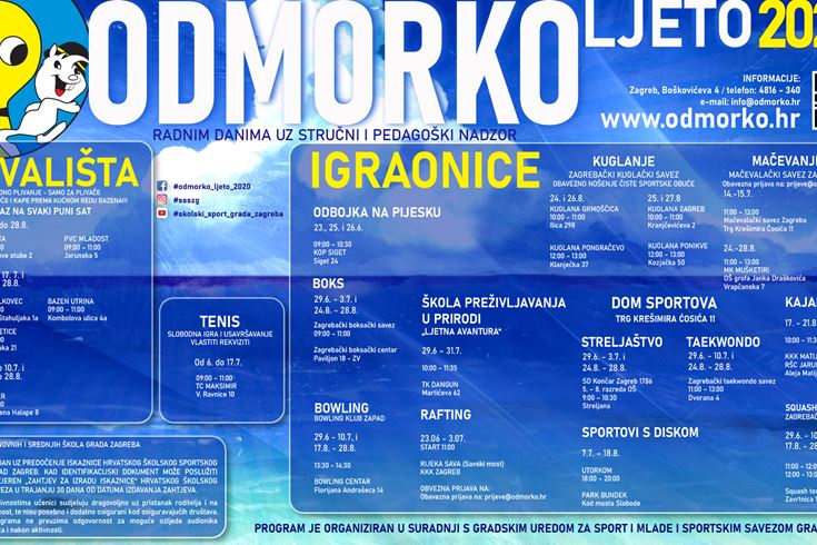 Školski sportski savez Grada Zagreba tijekom ljetnog odmora pripremio je besplatne sportske aktivnosti za učenike osnovnih i srednjih škola Grada Zagreba. Sudjelovanje u aktivnostima je besplatno uz predočenje važeće iskaznice Hrvatskog školskog sportskog saveza za Grad Zagreb.