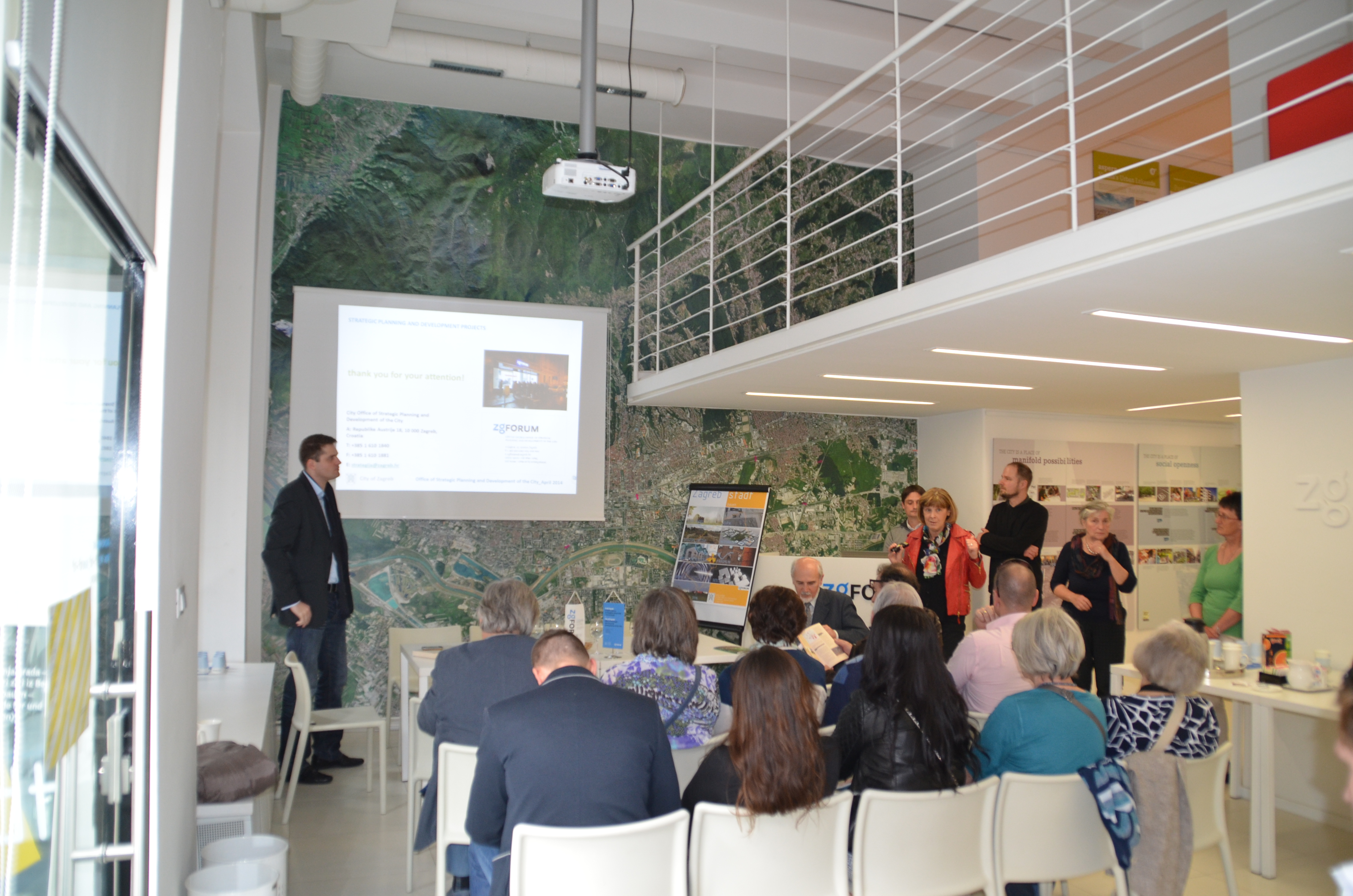 Završetak obilaska završio je posjetom ZgForumu, prostoru u čijem je nastanku i oblikovanju kao uzor poslužio upravo bečki Plannungswerkstatt kao mjesto dijaloga uprave i građana. Pročelnica Ureda za strategiju u svom je govoru gostima istaknula kvalitetnu dugogodišnju suradnju Beča i Zagreba, rezultat koje je i izložba Stadtbauen – Izgradnja grada koja se može pogledati u ZgForumu. Bečkoj delegaciji predstavljene su osnovne informacije o Zagrebu, Uredu za strategiju , Zagrebplan – u te neki strateški gradski projekti.