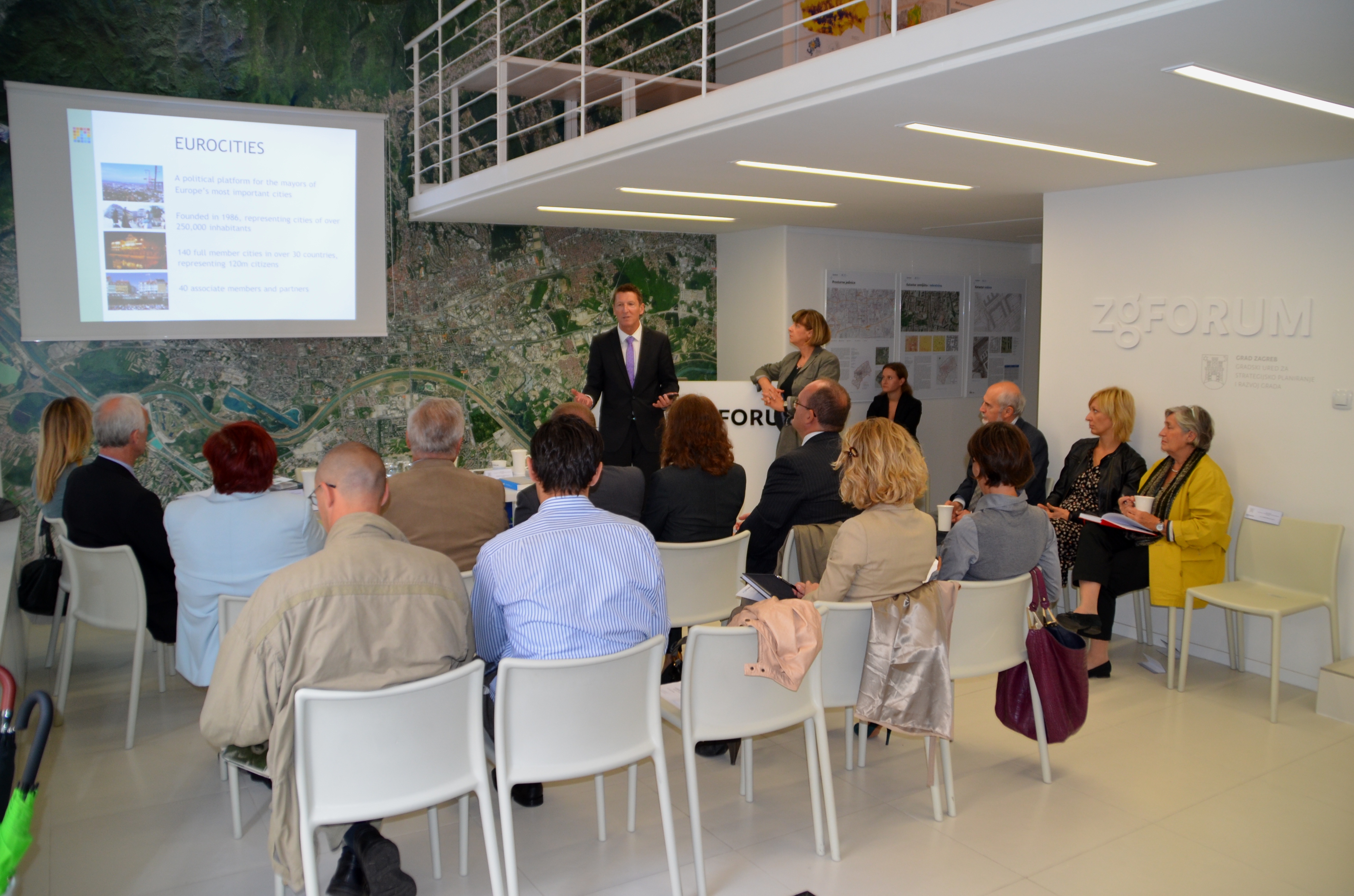 Predstavnici EUROCITIES – a, Paul Bevan, glavni tajnik i Tara Schneider Appriou, izvršna pomoćnica, u četvrtak 20. rujna 2012. posjetili su ZgForum. Predstavnici Gradskog ureda za strategijsko planiranje i razvoj Grada uglednim su gostima održali kratke prezentacije o djelatnostima i opsegu poslova kojima se Ured za strategiju bavi.