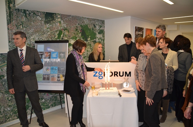 Prigoda je iskorištena i za obilježavanje dvije godine rada ZgForuma. Kratka retrospektiva događanja prikazana je kroz najavne panoe dosad organiziranih izložbi u ZgForumu i seriju fotografija. Uzvanike je na brojna događanja (edukacije za pripremu europskih projekata, gostovanja domaćih i stranih izaslanstava, sastanake s partnerima na lokalnim, regionalnim i međunarodnim projektima, pa sve do gostovanja studenata i rada na socijalnoj uključivosti) podsjetila pročelnica Veselić Bruvo, a gradonačelnik Bandić je čestitao svima uključenima u projekt i rad ZgForuma još jednu uspješnu radnu godinu.