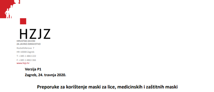 Preporuke za korištenje maski za lice, medicinskih i zaštitnih maski, verzija 3