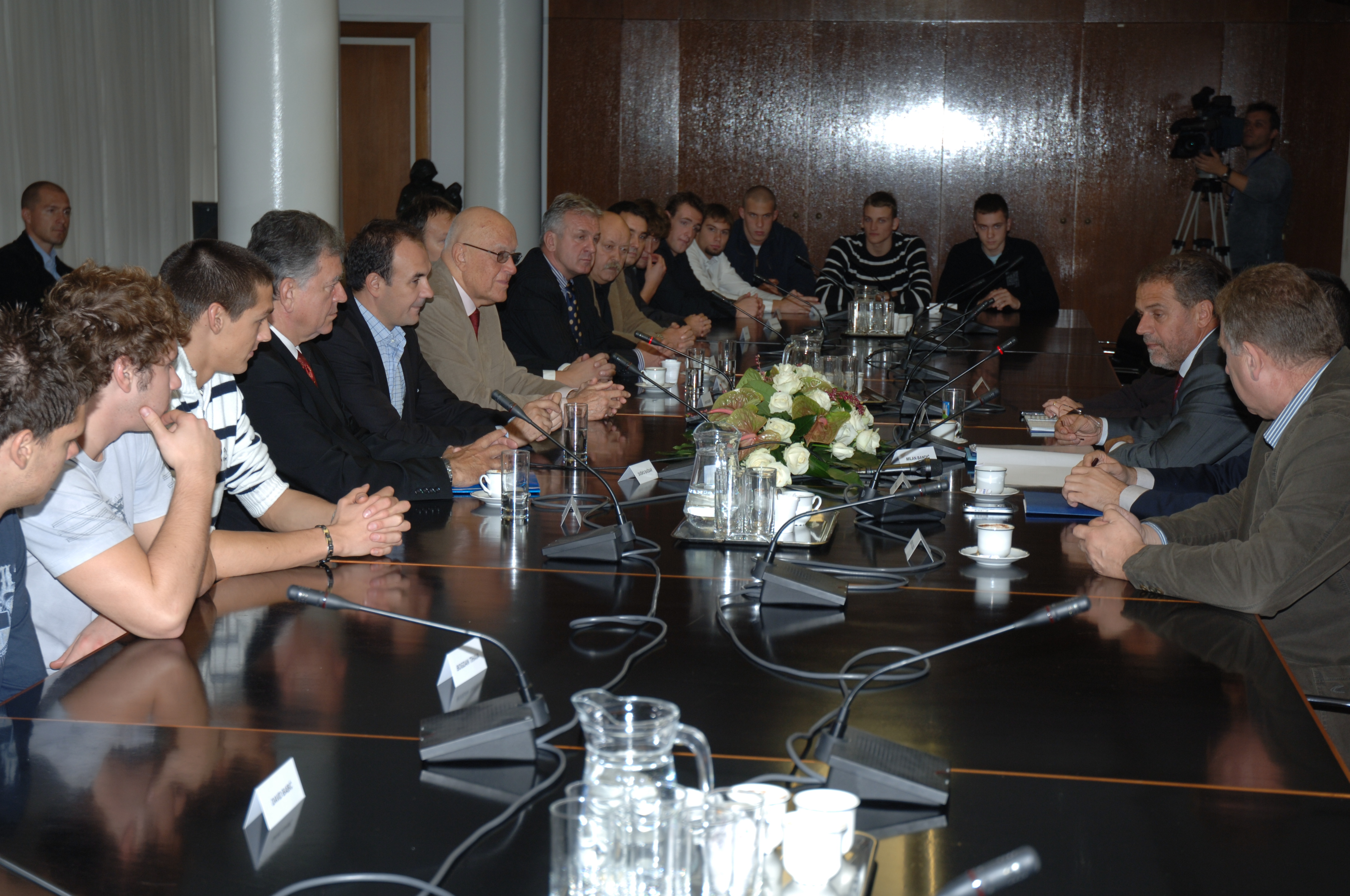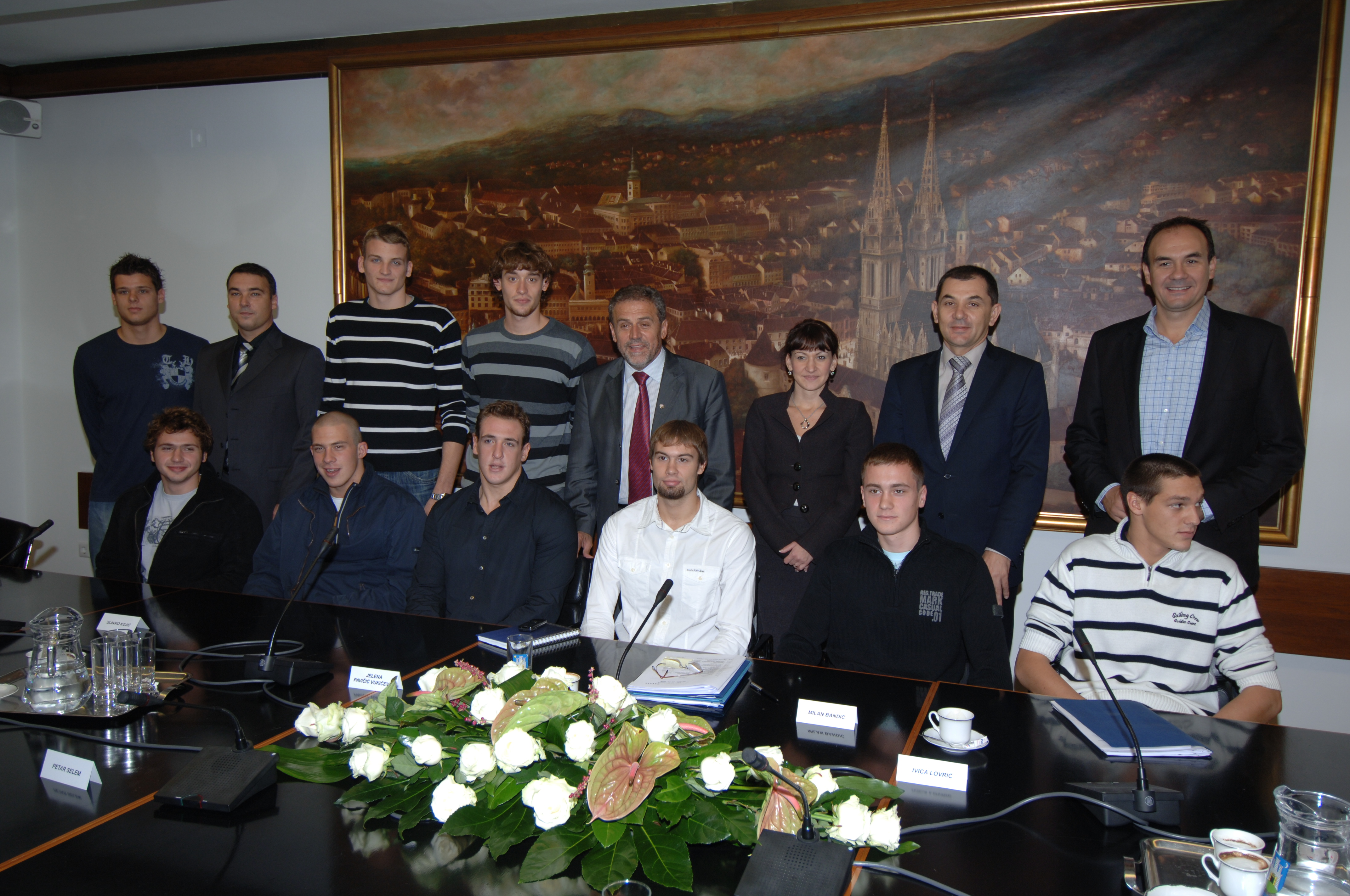 Zagrebački gradonačelnik Milan Bandić, zamjenica Jelena Pavičić Vukičević te pročelnik Ureda za obrazovanje, kulturu i šport Ivica Lovrić primili su jutros mlade zagrebačke vaterpoliste, koji su se u posljednje vrijeme iskazali izvanrednim sportskim rezultatima. Mladi sportaši HAVK Mladosti i VK Medveščaka osvojili su zlatnu medalju na Svjetskom prvenstvu do 18 godina u Šibeniku, kao i juniori do 20 godina na Europskom prvenstvu u Grčkoj, a na prijam kod gradonačelnika stigli su u pratnji predstavnika svojih klubova te Zagrebačkog vaterpolo saveza, koje je predvodio proslavljeni vaterpolist Perica Bukić.