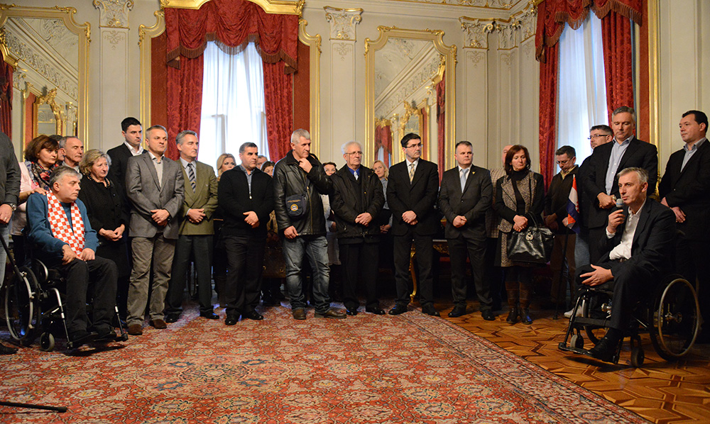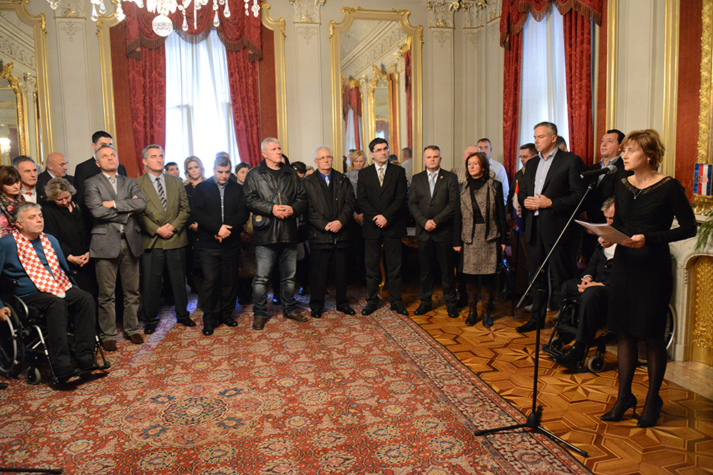 U gradskoj palači Dverce, zamjenica gradonačelnika Sandra Švaljek sa suradnicima i u nazočnosti predsjedništva i članova Gradske skupštine predvođenima predsjednikom Darinkom Kosorom, danas je upriličila predbožićni prijem za predstavnike braniteljskih udruga grada Zagreba, udruga iz drugog svjetskog rata i civilnih invalida rata.