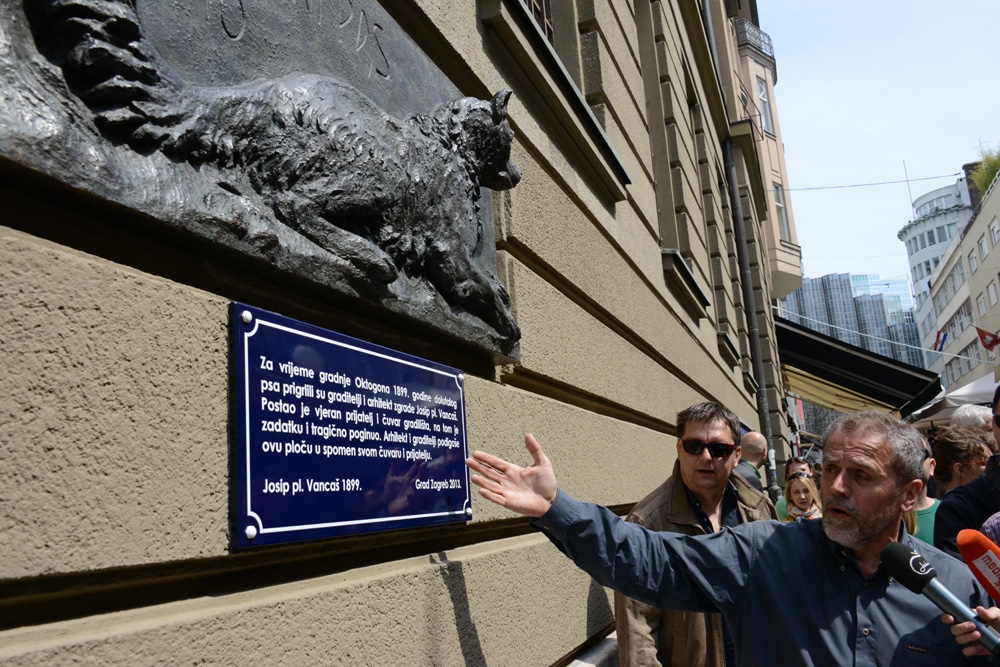Uslijedili su razgledi spomenika u samom srcu grada: biste Ljudevita Gaja, Kožarićeva Crvenog znaka, skulpture Razvrstana forma te spomen ploče postavljene u znak sjećanja na psa lutalicu, vjernog čuvara gradilišta Oktogona koji je posebno dojmio tadašnje graditelje. Detalji se mogu naći ispod ploče: Za vrijeme gradnje Oktogona 1899. godine dolutalog psa prigrlili su graditelji i arhitekt zgrade Josip pl. Vancaš. Postao je vjeran prijatelj i čuvar gradilišta, na tom je zadatku i tragično poginuo. Arhitekt i graditelji podigoše ovu ploče u spomen svom čuvaru i prijatelju. Josip pl. Vancaš 1899. Grad Zagreb 2013.