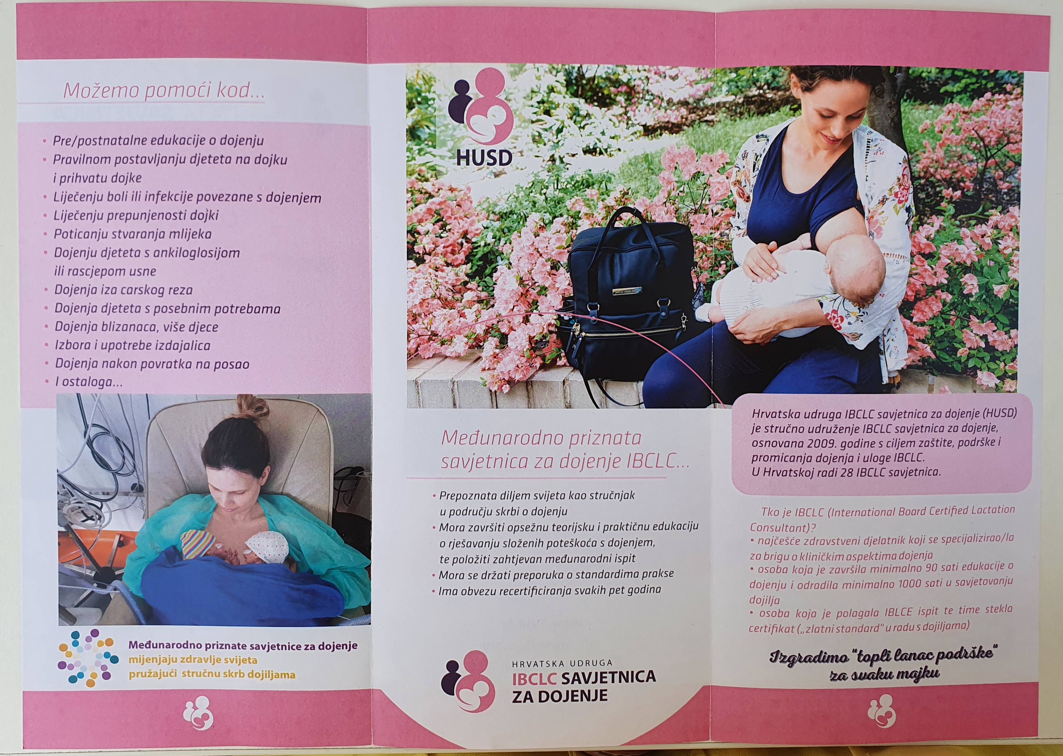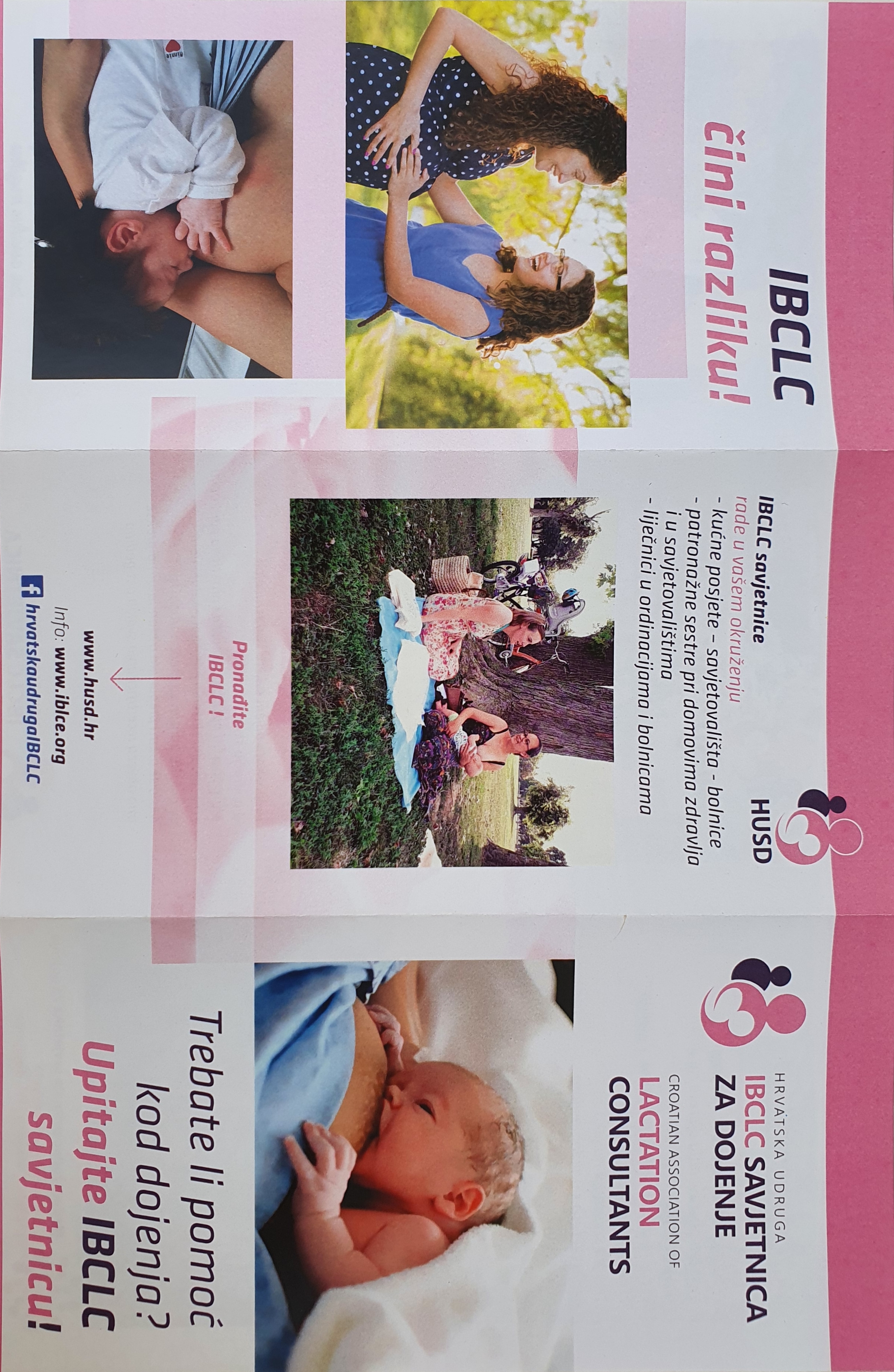 Ciljanoj populaciji podijeljeni su informativni i edukativni materijali: Priručnik za dojenje, HUGPD: Savjetnik o izdajanju i čuvanju majčinog mlijeka,  HUGPD: Mali savjetnik za uspješno dojenje - Mitovi o dojenju, vizit karta Grada Zagreba unutra koje su predstavljene i brojne demografske mjere, letci Savjetovališta za dojenje Doma zdravlja Zagreb - Zapad i letci Savjetovališta za baby handling Doma zdravlja Zagreb - Zapad.