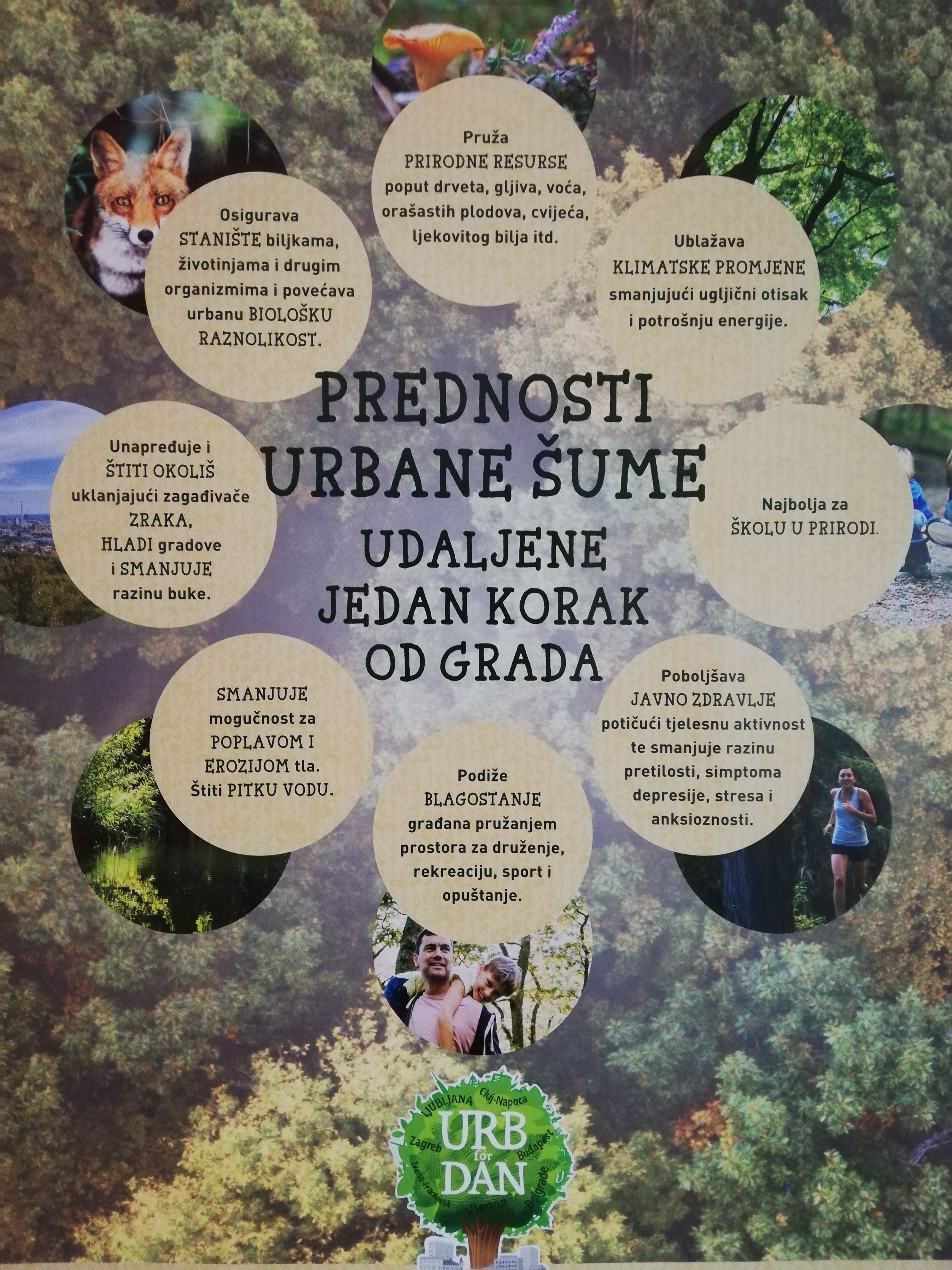 Projekt URBforDAN provodi se u međunarodnom konzorciju o 12 partnera, uključujući Grad Zagreb i četiri pridružena partnera. Provedba projekta pridonosi unaprjeđenju stanja ekoloških i društvenih funkcija područja prirodne i kulturne baštine, s fokusom na urbane šume te osigurava visoku kvalitetu zaštite i održivog upravljanja područjima prirodne i kulturne baštine.