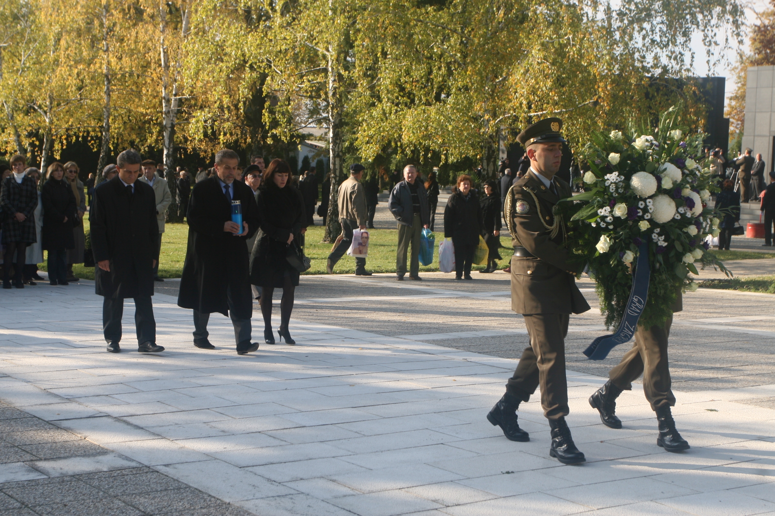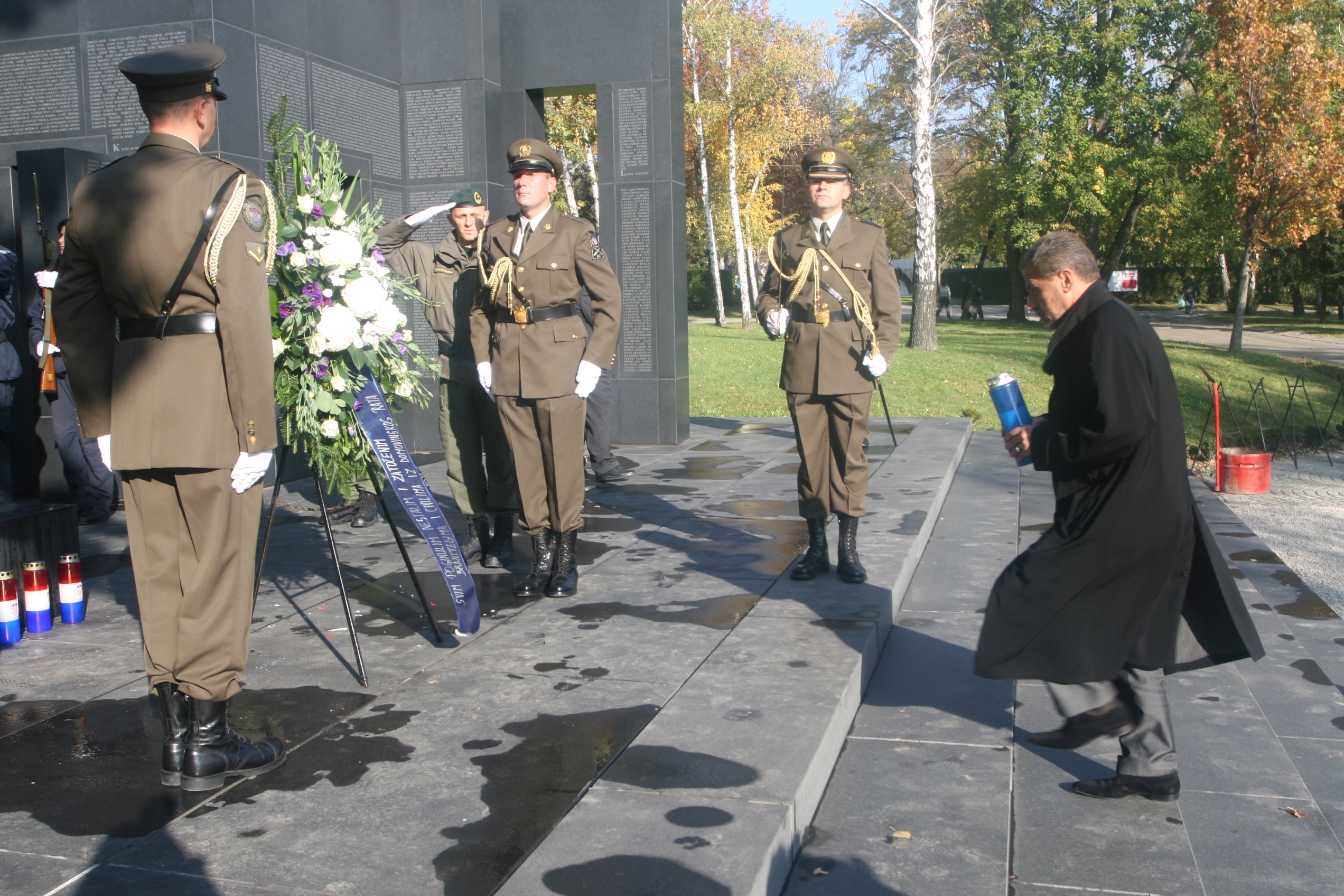 Gradsko izaslanstvo predvođeno gradonačelnikom Milanom Bandićem položilo je vijence i zapalilo svijeće uz Zid boli, grobnicu narodnih heroja, pored središnjeg križa u Aleji branitelja...