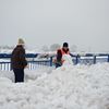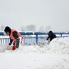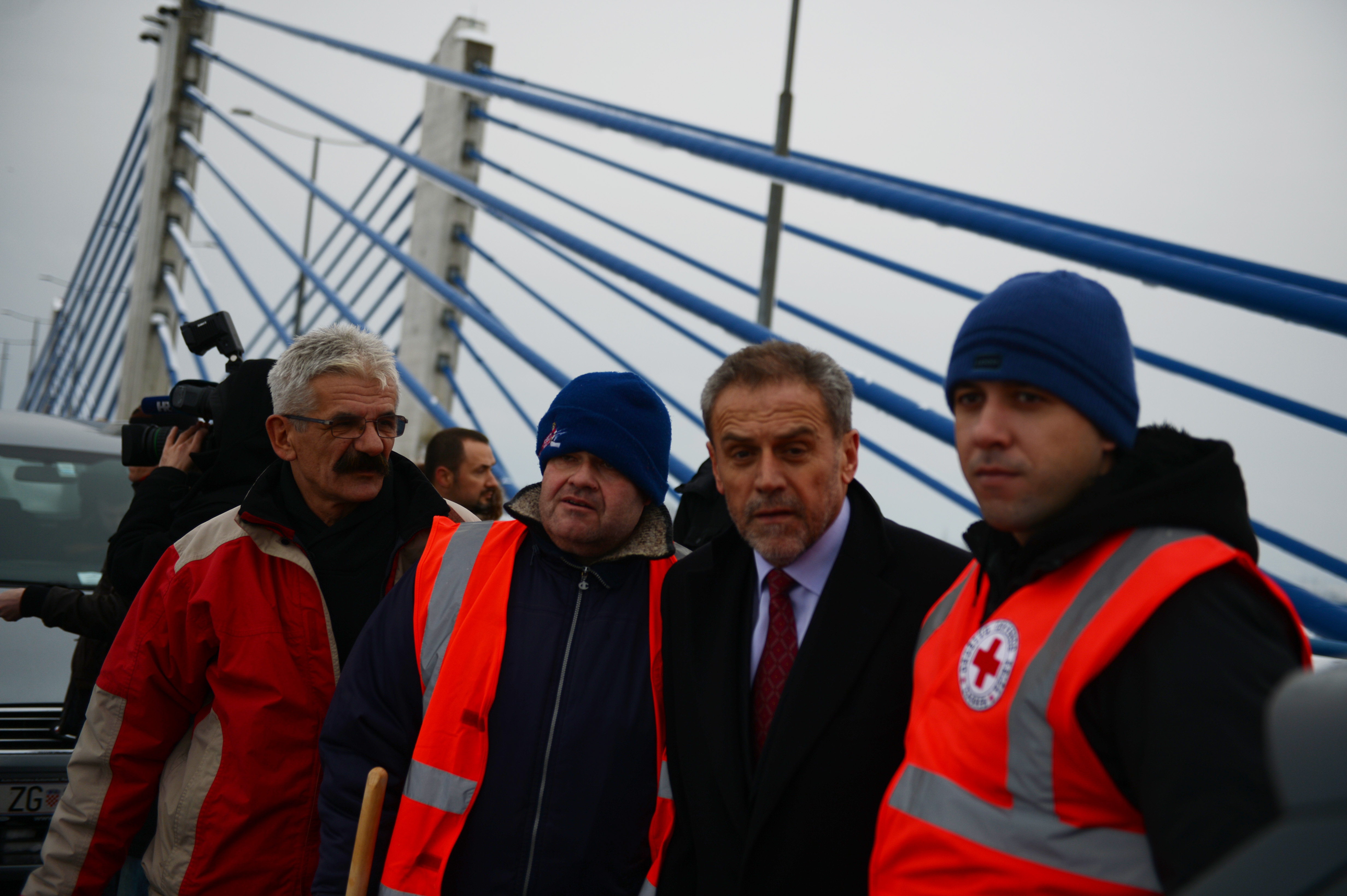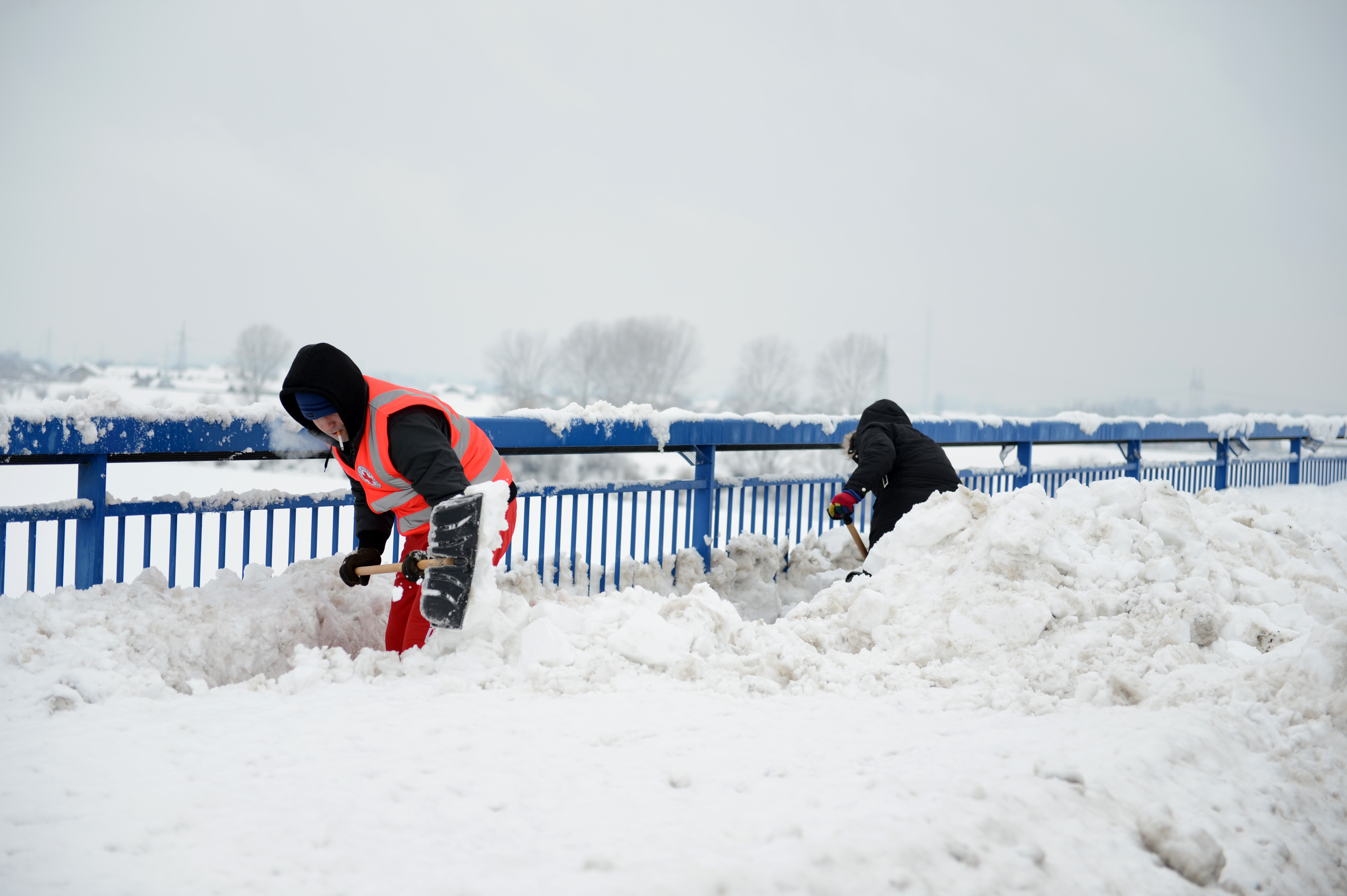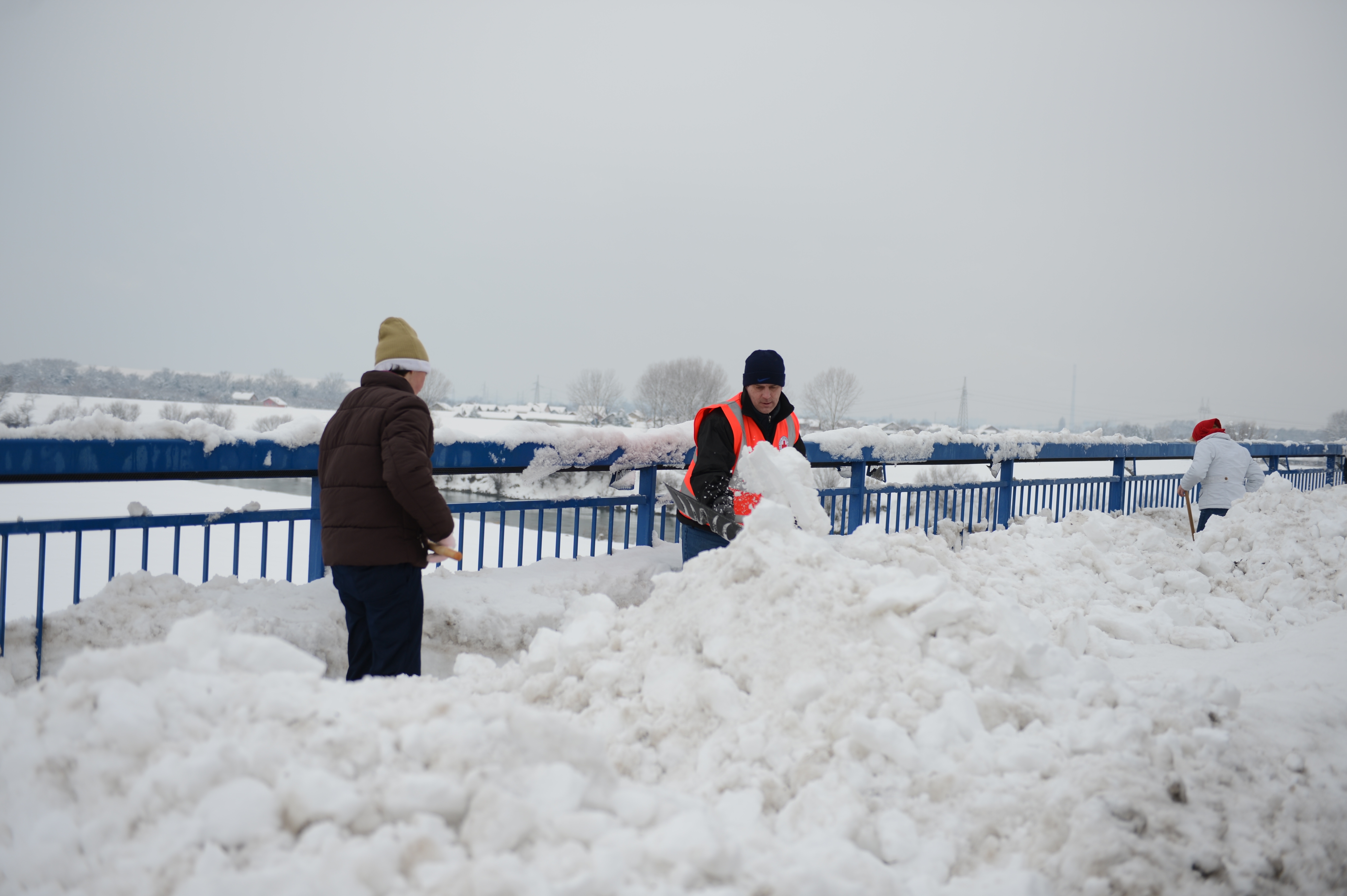 Pedesetak korisnika prenoćišta Velike Kosnice počelo je oko 10 sati s čišćenjem pločnika na Domovinskom mostu.