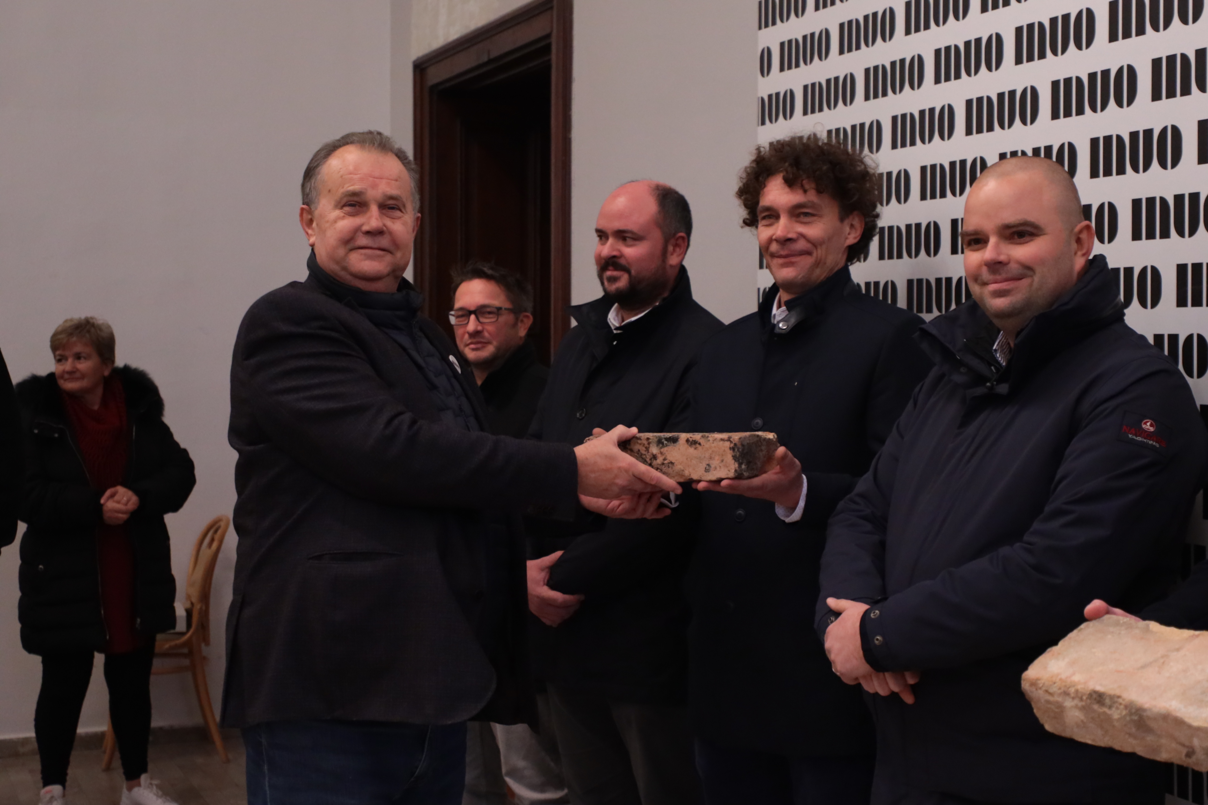 Ravnatelj je predstavnicima Grada i Ministarstva uručio po jednu staru originalnu ciglu spašenu iz šute nastale prilikom potresa, a predstavnici izvođača radova uz ciglu su dobili i originalan ključ muzejskih vrata, uz poruku ravnatelja – da ga što brže vrate!