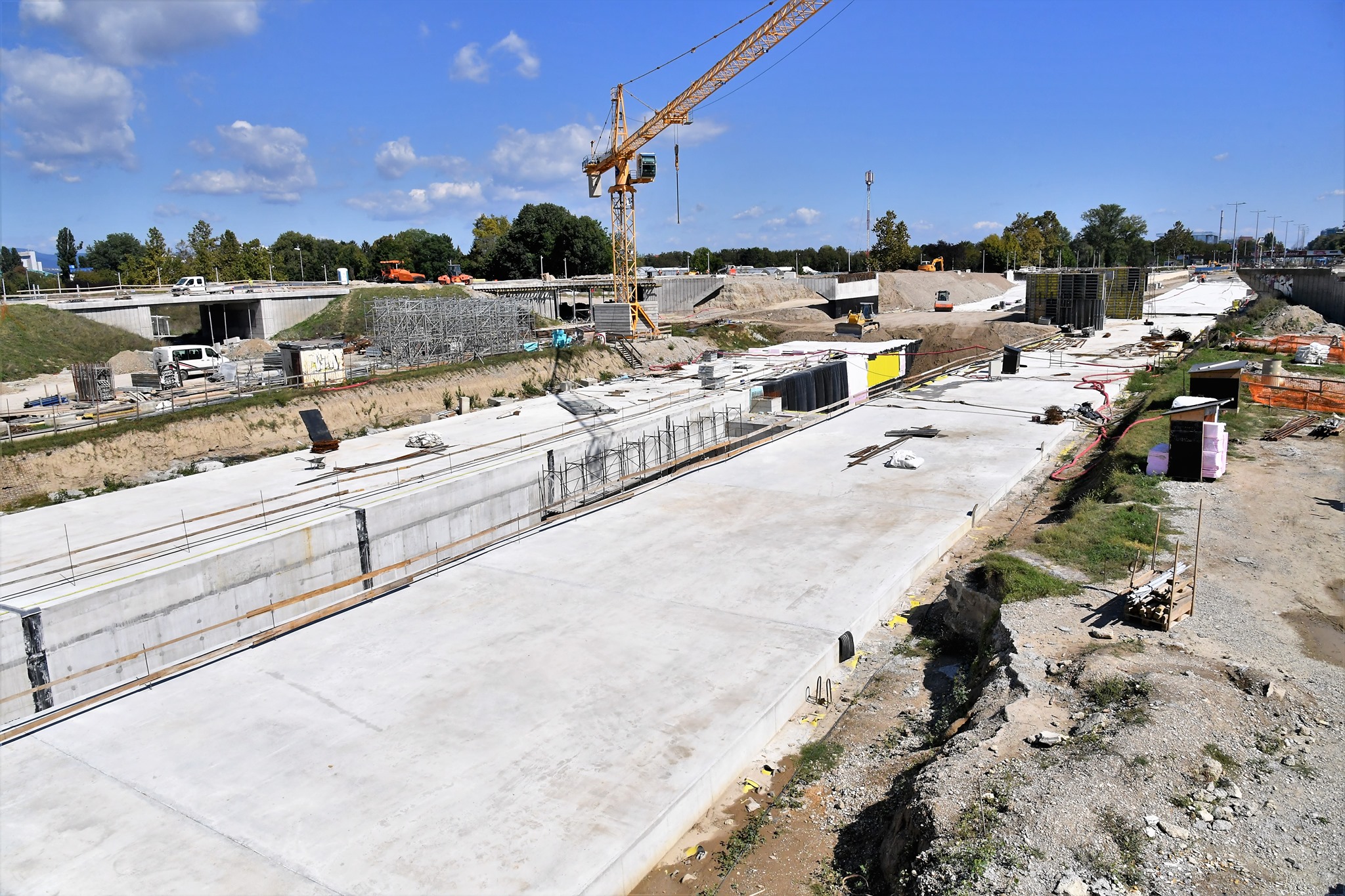 40% automobila u Zagrebu ovdje ulazi i izlazi iz pravca Avenije Dubrovnik, Jadranskog mosta na Jadransku aveniju. Danas ovdje vidimo dva tunela duljine 280 metara s čime je gotova prva faza radova, dodao je gradonačelnik, napomenuvši da se ovdje kopalo 38-40 metara u dubinu i da je trebalo puno toga napraviti da se ovo danas dovrši i naprave armirano betonske konstrukcije na potezu istok-zapad od Avenije Dubrovnik do Jadranske avenije.