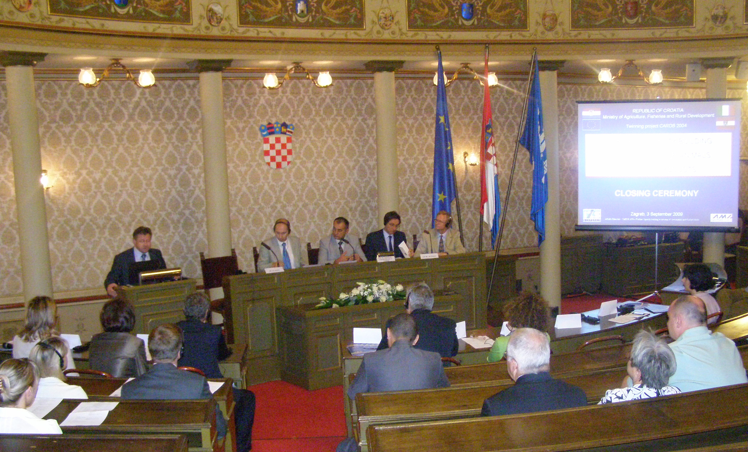 Zamjenik gradonačenika Ivo Jelušić pozdravio je u prisutne na prigodnoj svečanosti u Staroj gradskoj vijećnici u povodu završetka CARDS 2004. Twinning projekta Daljnje jačanje kapaciteta u području živih životinja i prehrambenih proizvoda.