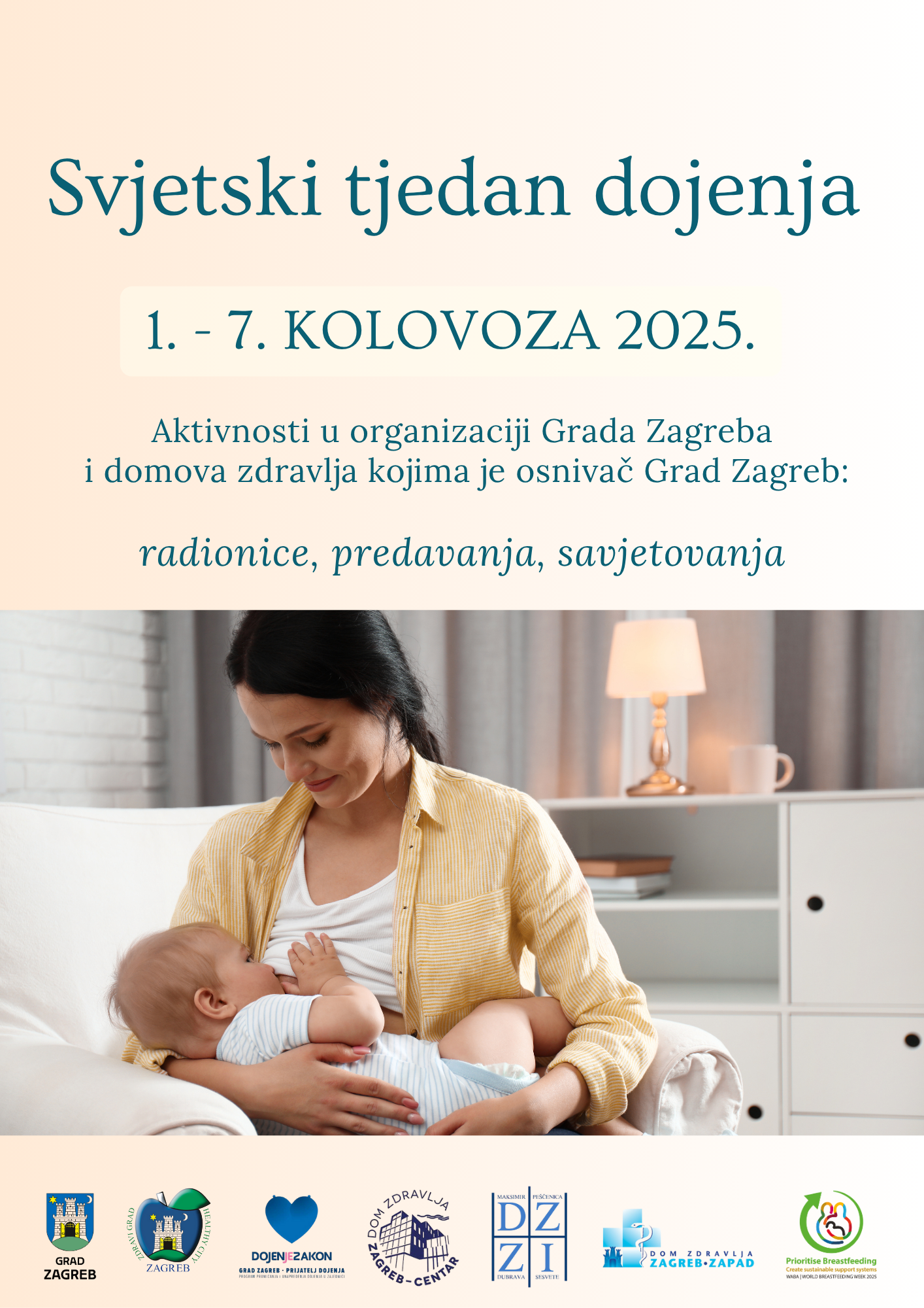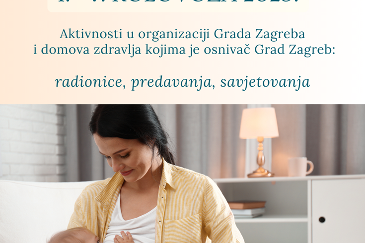 Od 1. do 7. kolovoza Grad Zagreb i domovi zdravlja kojima je Grad osnivač organiziraju besplatne radionice, predavanja i savjetovanja u povodu Svjetskog tjedna dojenja, a s ciljem promocije dojenja te poboljšanja zdravlja djece i majki.