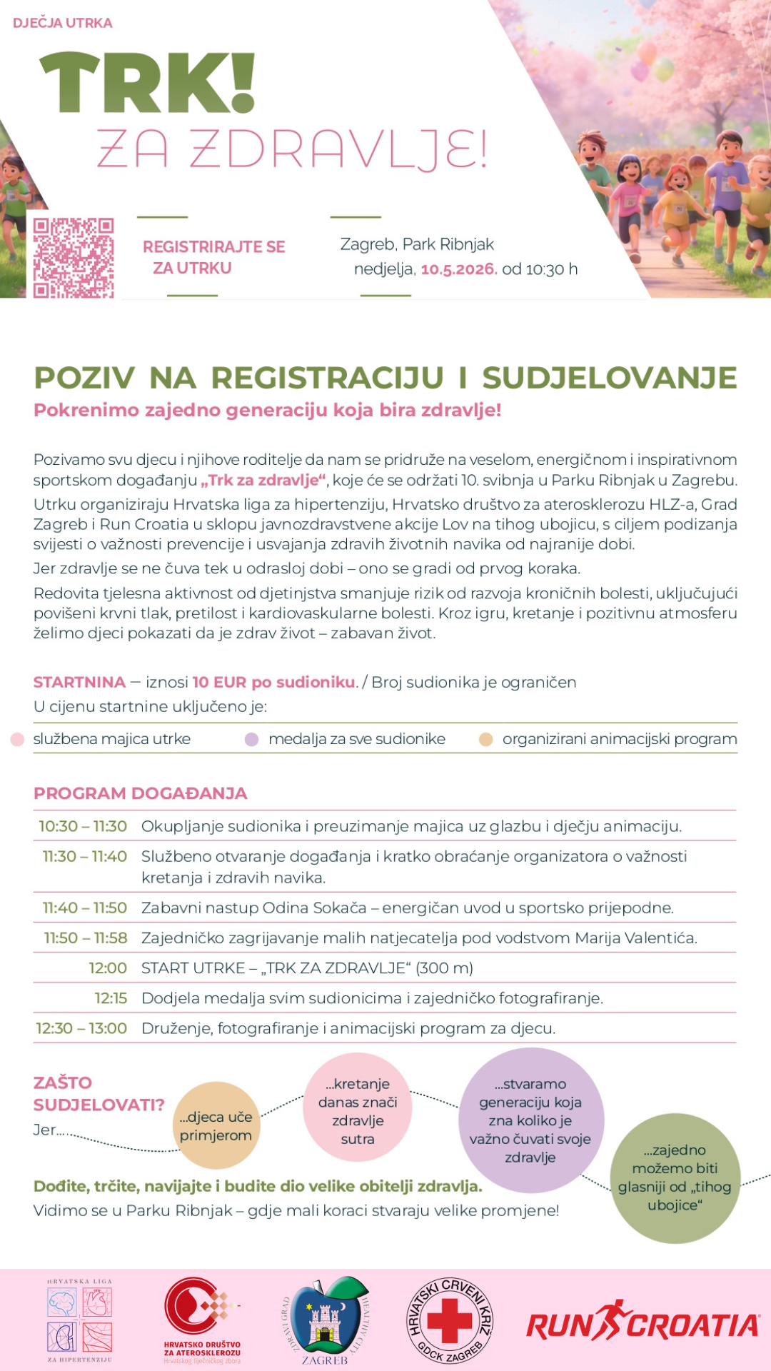 Hrvatska liga za hipertenziju u suradnji s Gradskim uredom za socijalnu zaštitu, zdravstvo, branitelje i osobe s invaliditetom Grada Zagreba i Gradskim uredom za obrazovanje, sport i mlade te uz podršku Gradskog društva Crvenog križa Zagreb već treću godinu zaredom organizira dječju utrku pod nazivom