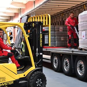 Kamion humanitarne pomoći šalje Grad Zagreb, koji je osigurao Gradsko društvo Crvenog križa Zagreb, krenuo je jutros prema Varšavi iz skladišta Crvenog križa u Heinzelovoj ulici.