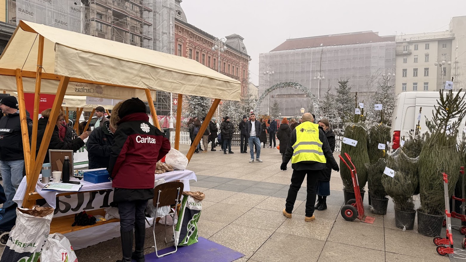 U sklopu humanitarnog programa Hrvatskog Caritasa, Za 1000 radosti, koji je započeo prije 23 godine, danas je, već tradicionalno, na središnjem zagrebačkom trgu održana humanitarna prodaja božićnih drvaca u tegli, koje su donirale Hrvatske šume.