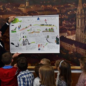 Na pitanje o tome može li biti više biciklističkih staza, gradonačelnik Tomašević je rekao kako se konstantno na tome radi, a pozvao ih je i da što češće na Sljeme idu žičarom koja je za djecu besplatna. Dodao je i kako Grad namjerava kupiti autobuse na vodik ili električnu energiju kako bi se zrak što manje zagađivao. Poručio im je i da slušaju tete, jedu što više voća i povrća, bave se sportom te da u školi marljivo uče i postanu dobri i vrijedni ljudi koji će svojim radom doprinijeti našem gradu. Gradonačelnik je za kraj zaigrao s njima nogomet te se našalio da mu mališani postavljaju teže pitanja od novinara na redovnim konferencijama za medije koje održava.