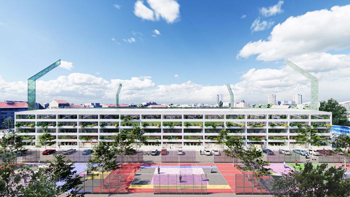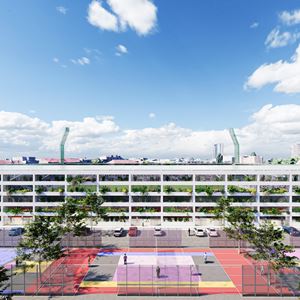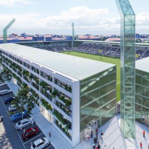 Na istočnoj strani novog stadiona bit će parking koji će služiti kao sportsko-rekreativna površina kad nema utakmica. U projektu je uključen i novi trokutasti gradski trg, a na krovu nad tribinama će biti instalirane velike solarne ploče od kojih će se stadion napajati energijom. Na vanjskim dijelovima će biti viseći horizontalni vrtovi koji će se zalijevati kišnicom prikupljenom s krova nad tribinama.
