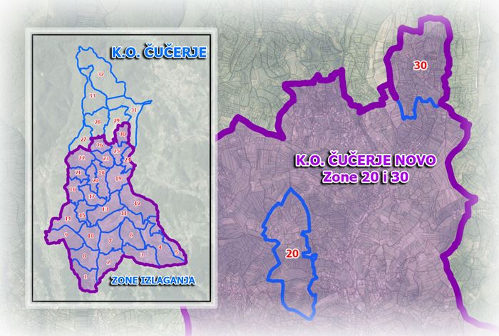 K.o. Čučerje Novo - ODLUKAo stavljanju u službenu uporabu katastarskog operata za 20. i 30. zonu izlaganja Na temelju podataka katastarske izmjere, podataka prikupljenih tijekom izlaganja na javni uvid elaborata katastarske izmjere i podataka preuzetih iz obnovljene zemljišne knjige izrađen je katastarski operat katastra nekretnina za katastarsku općinu Čučerje Novo za 20. i 30. zonu izlaganja. Stavlja se u službenu uporabu dana 16.4.2026. godine i nastavlja održavati u trajnoj suglasnosti sa zemljišnom knjigom.