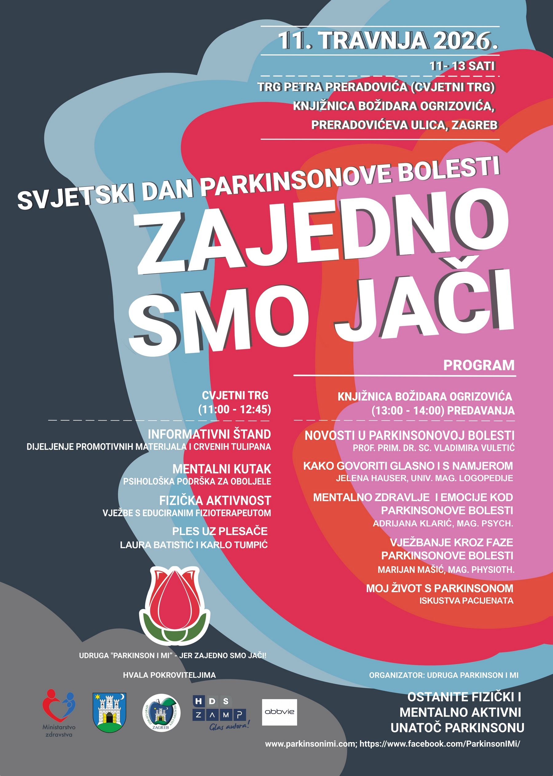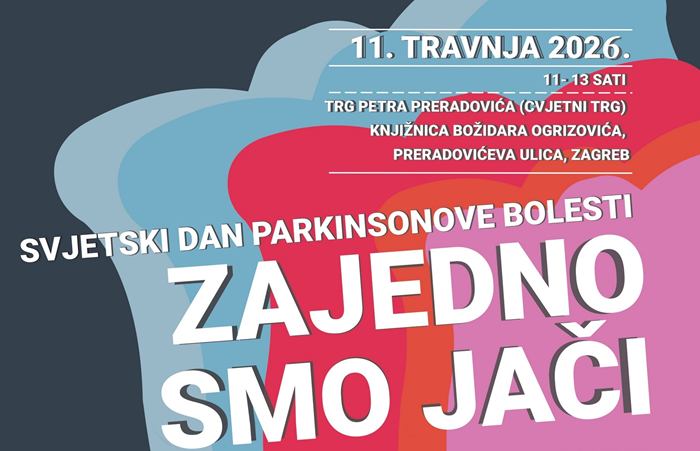 Povodom obilježavanja Svjetskog dana Parkinsonove bolesti, udruga Parkinson i mi u suradnji s Gradskim uredom za socijalnu zaštitu, zdravstvo, branitelje i osobe s invaliditetim Grada Zagreba organizira javnozdravstvenu akciju ispunjenu brojnim aktivnostima na Trgu Petra Preradovića, u subotu, 11. travnja 2026., u vremenu od 11.00 do 13.00 sati.