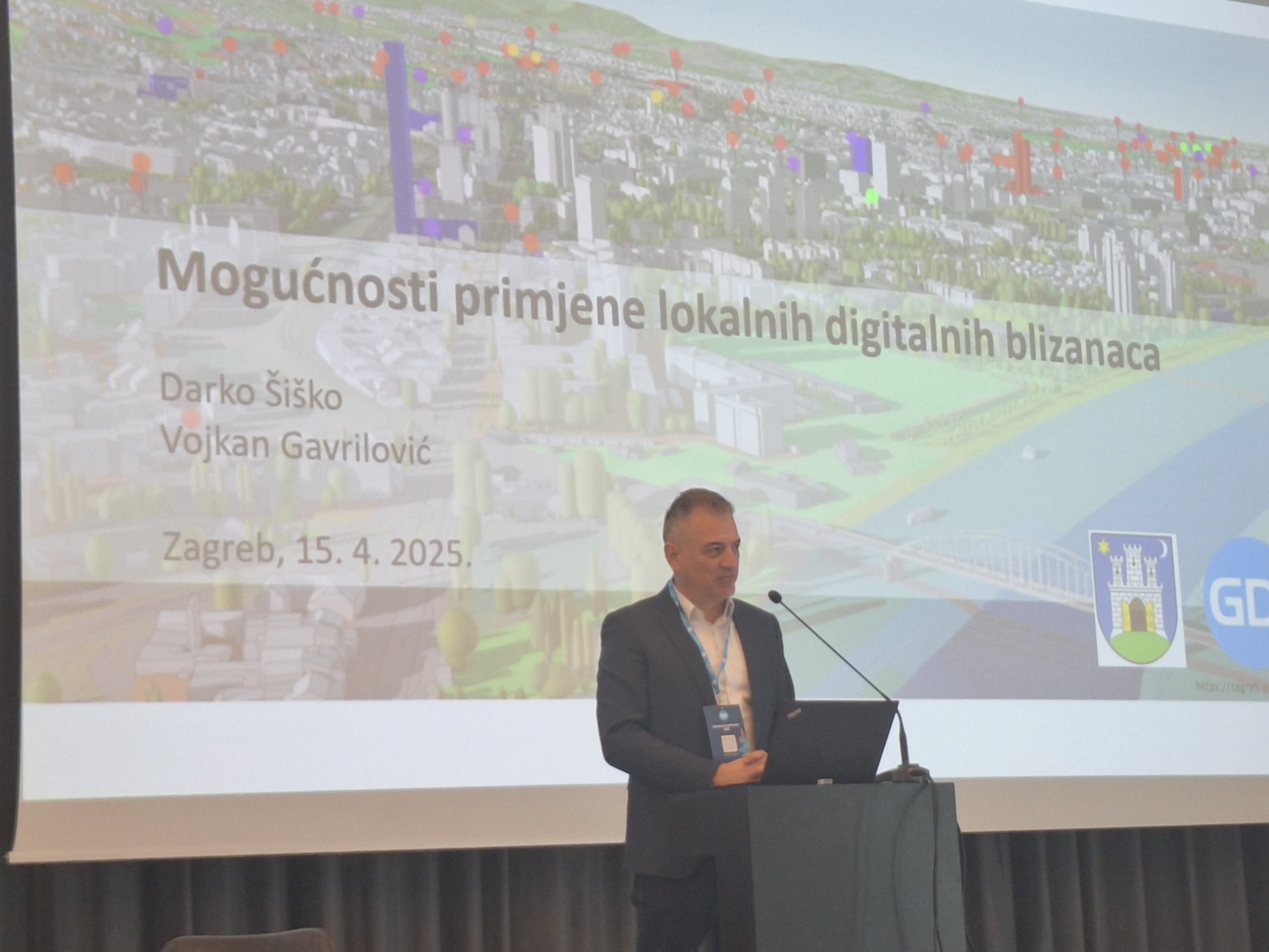 U sklopu navedene sesije, pomoćnik pročelnika za strategijske informacije i istraživanja u Gradskom uredu za gospodarstvo, ekološku održivost i strategijsko planiranje Darko Šiško održao je predavanje na temu mogućnosti primjena lokalnih digitalnih blizanaca nakon čega je uslijedila panel diskusija.