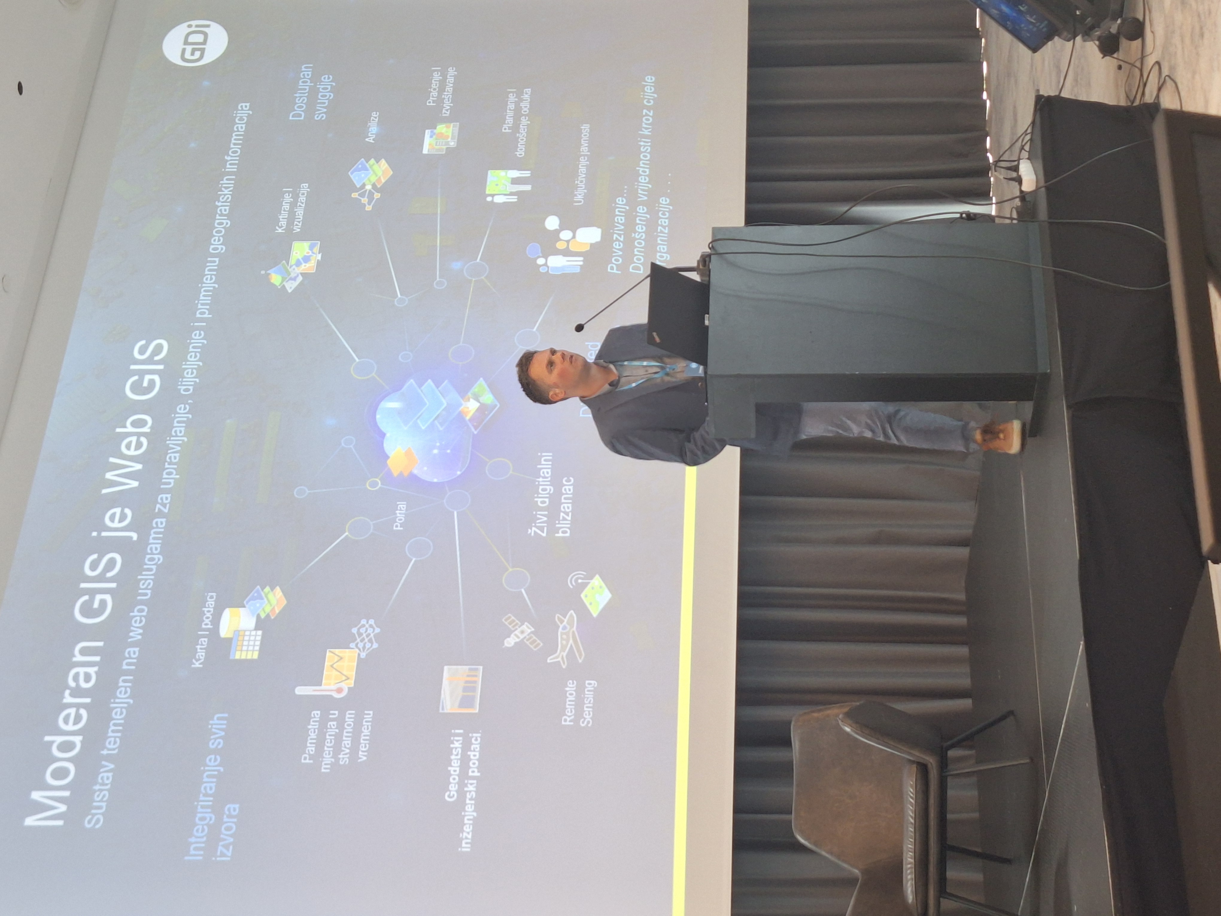 Na kraju su predstavnici GDi prezentirali GDi ArcGIS tehnološku platformu za geoprostorne digitalne blizance te najnovije funkcionalnosti i smjer razvoja, nakon čega je Tomislav Nikić (GDi Ensemble Global) predstavio GDi Ensemble OSS sustav za podršku operacija.