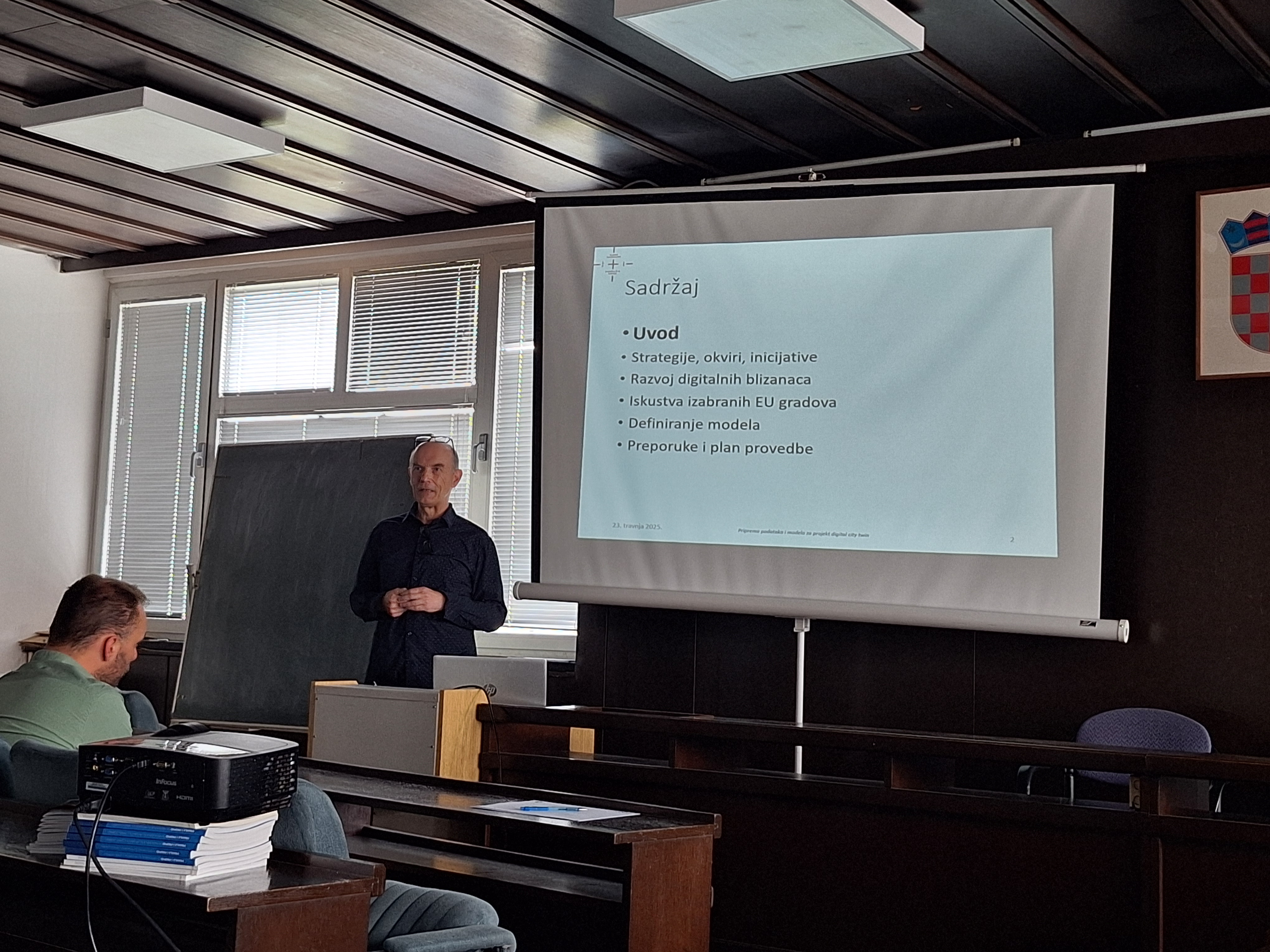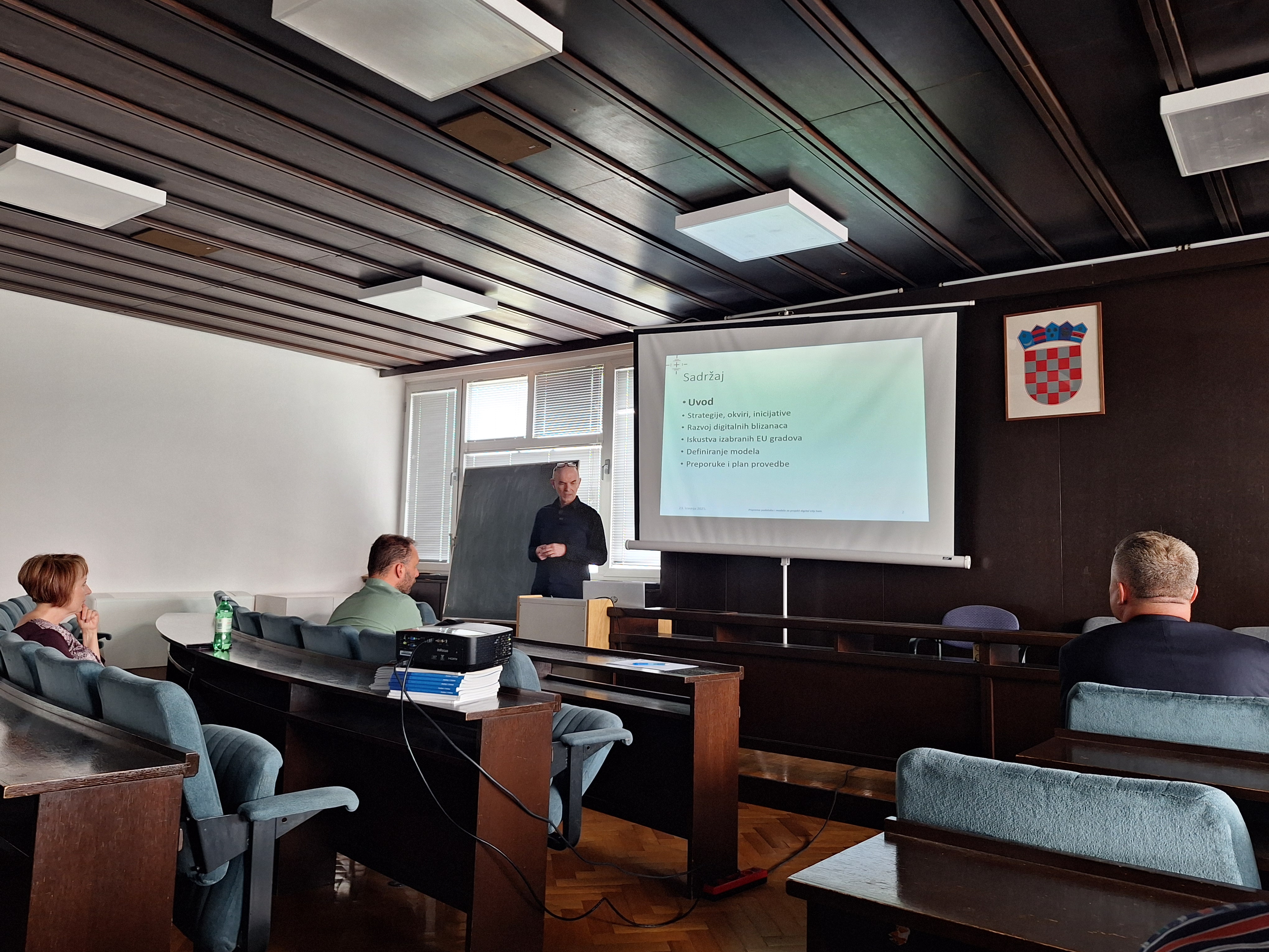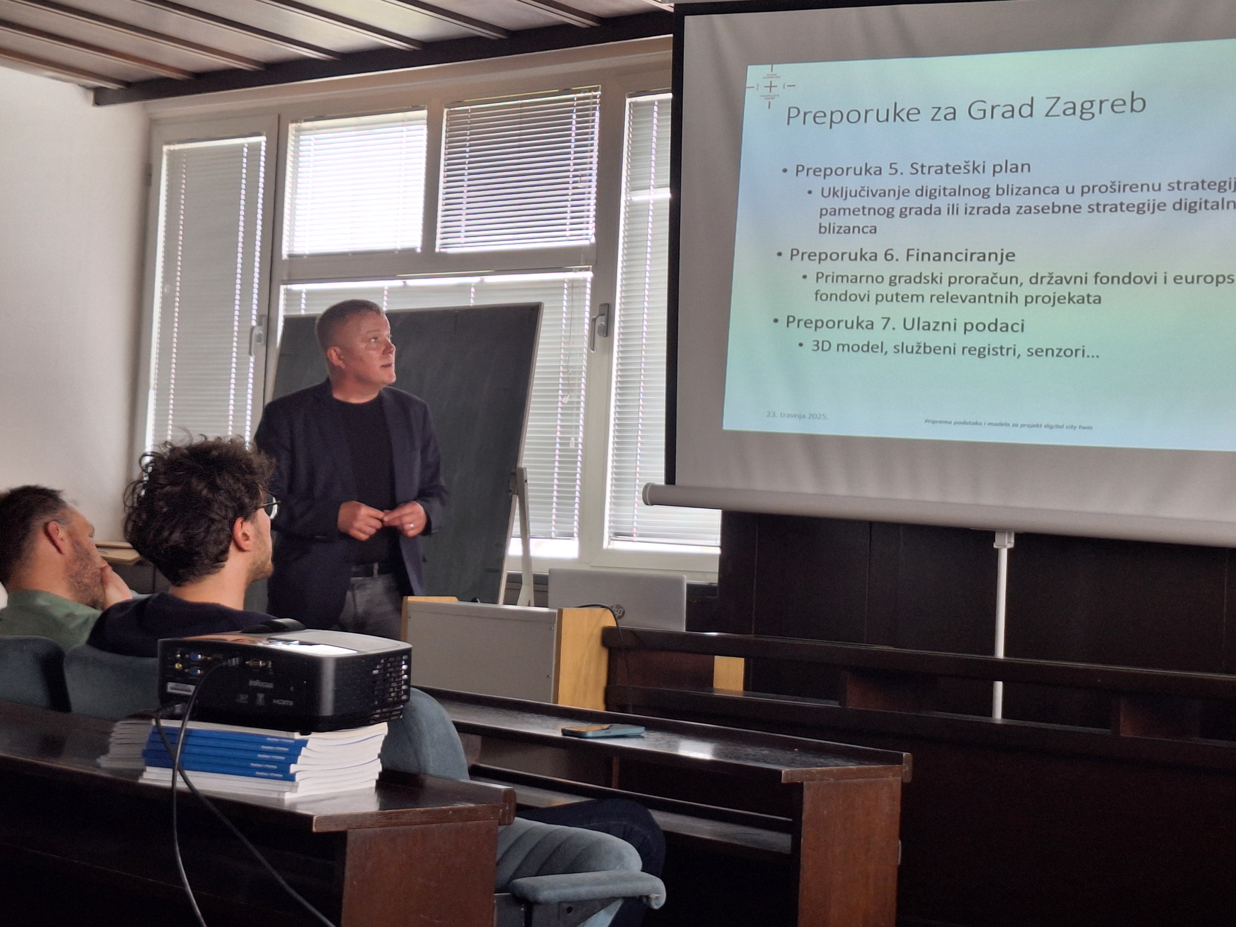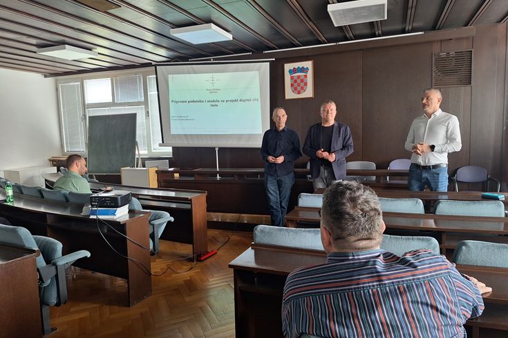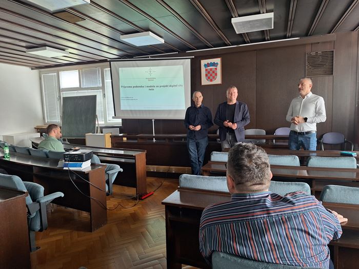 U srijedu, 23. travnja 2025. u prostorima Grada Zagreba na lokaciji Park Stara Trešnjevka 2, održana je prezentacija studije „Priprema podataka i modela za projekt Digital City Twin“, izrađene za potrebe prve etape projekta Digitalnog blizanca grada koju Grad Zagreb planira provesti tijekom 2025. godine. Studiju su predstavnicima nekoliko gradskih ureda Grada Zagreba (Gradski ured za gospodarstvo, ekološku održivost i strategijsko planiranje, Služba za informacijski sustav i tehničke poslove te Gradski ured za mjesnu samoupravu, promet, civilnu zaštitu i sigurnost), prezentirali predstavnici Odjela za geodeziju i geomatiku Sveučilišta Sjever, Sveučilišnog centra Varaždin, prof. dr. sc. Vlado Cetl i doc. dr. sc. Hrvoje Matijević.