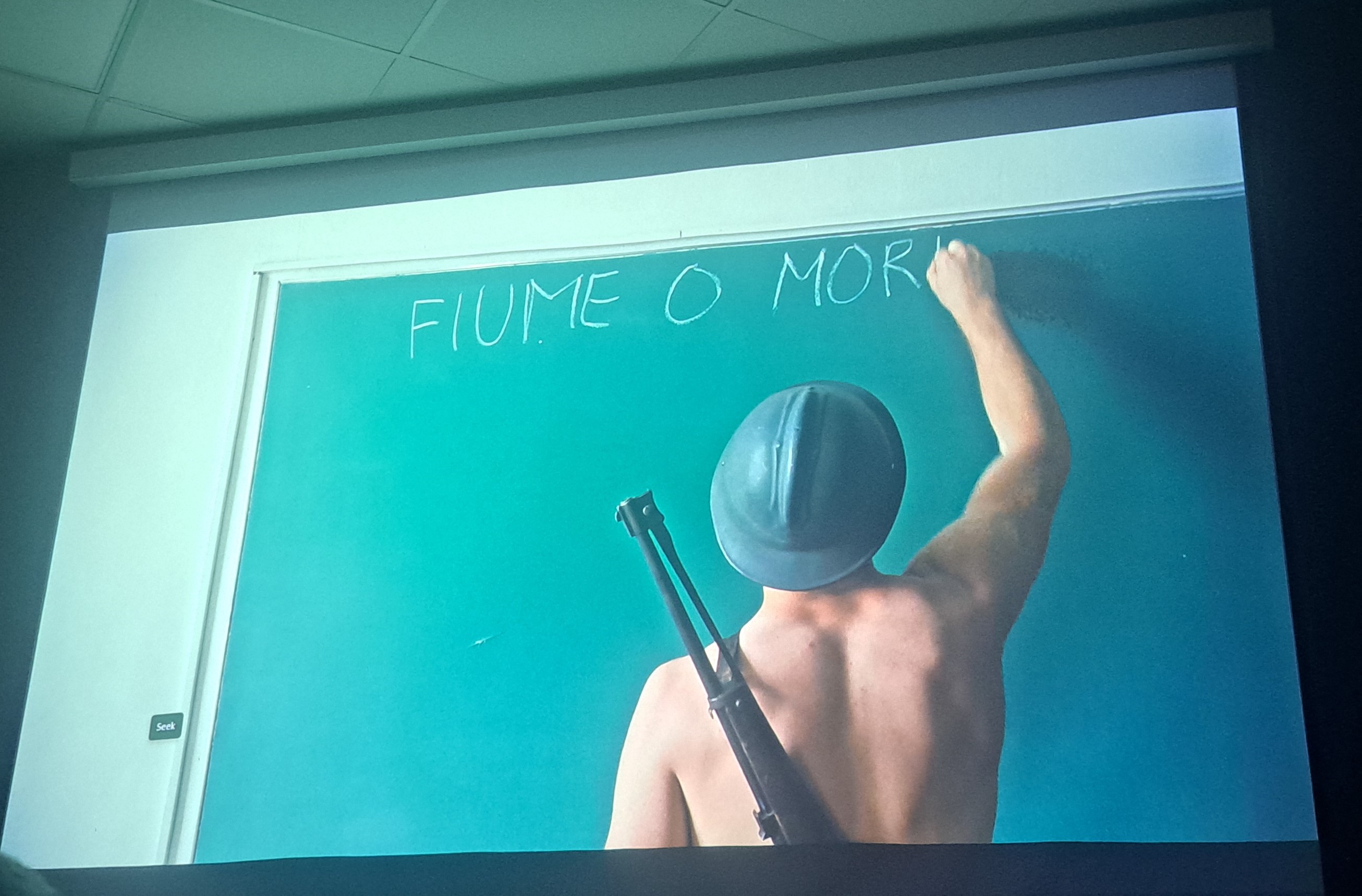 Nakon projekcije filma o 16-mjesečnoj okupaciji Rijeke 1919. godine pod vodstvom talijanskog pjesnika i vojskovođe Gabrielea D'Annunzija, održan je okrugli stol o povijesnom i društvenom kontekstu filma, a sudjelovali su povjesničar dr. sc. Tvrtko Jakovina i glumac Andrea Marsanich koji u filmu igra ulogu glavnog lika D’Annunzia i pripovjedača.