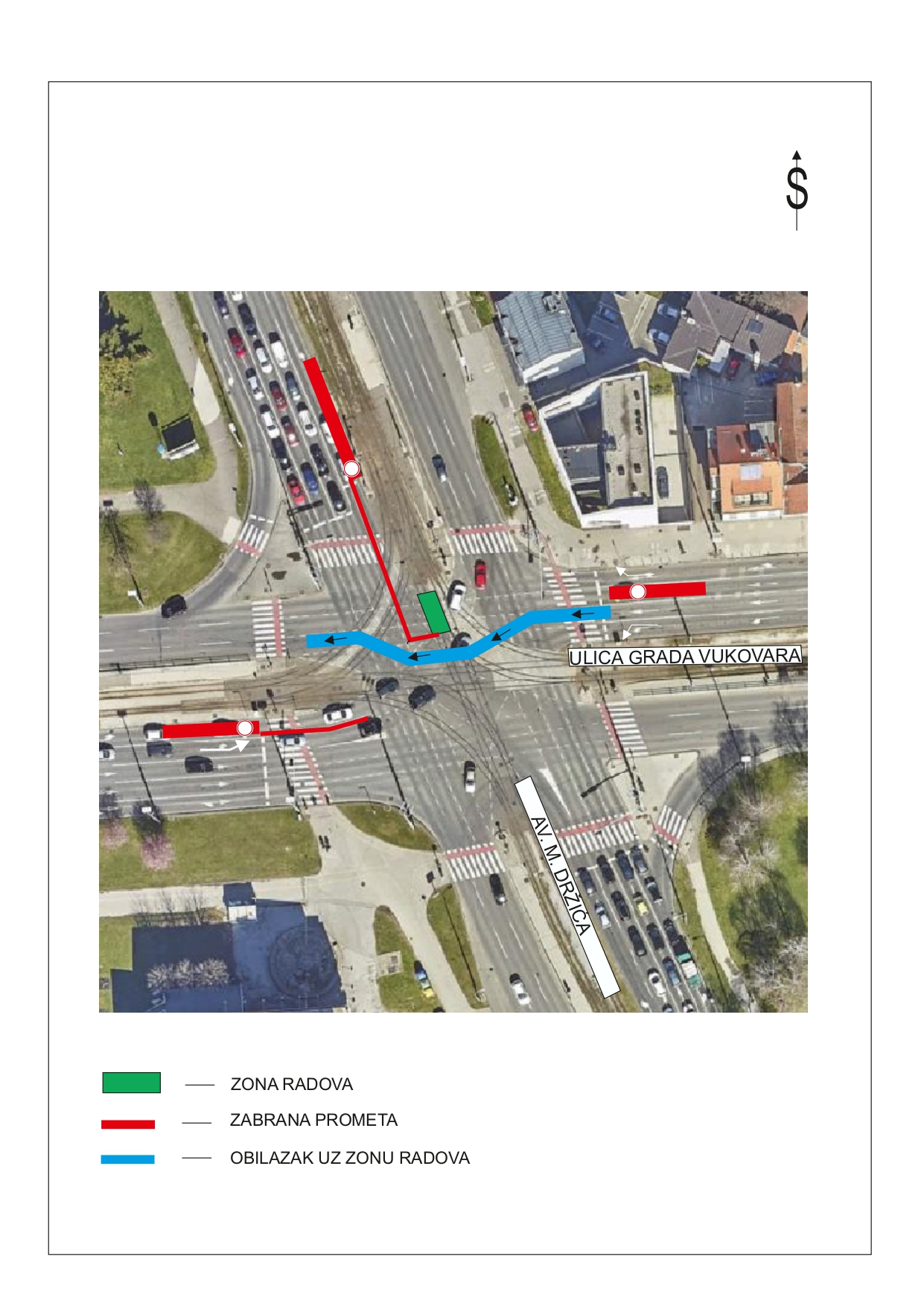 Za vrijeme radova bit će onemogućeno prometovanje iz smjera sjever (Avenija Marina Držića) u smjeru istoka (Ulica grada Vukovara).